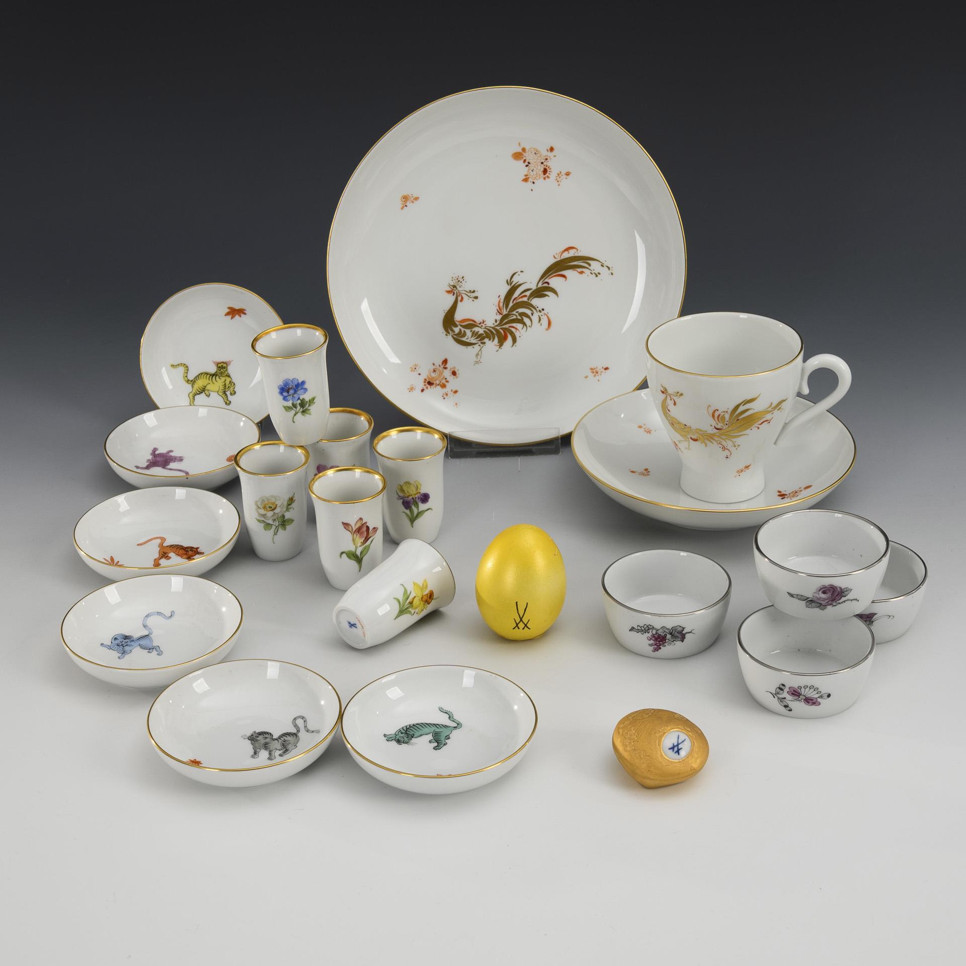 Sie befinden sich hier: Startseite Kategorien Porzellan Gedeck, 6 Nussschälchen, 6 Schnapsbecher, 4 Näpfchen, 1 Briefbeschwerer und 1 Ei