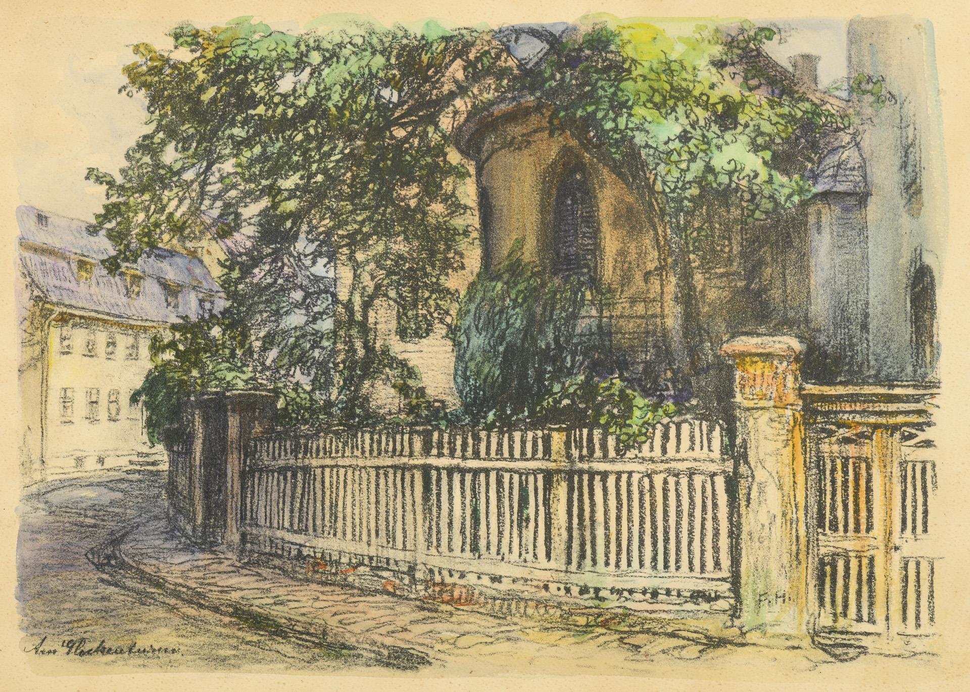 Gebäude in Pößneck. Leichte Lichtbräunung und schwach stockfleckig.