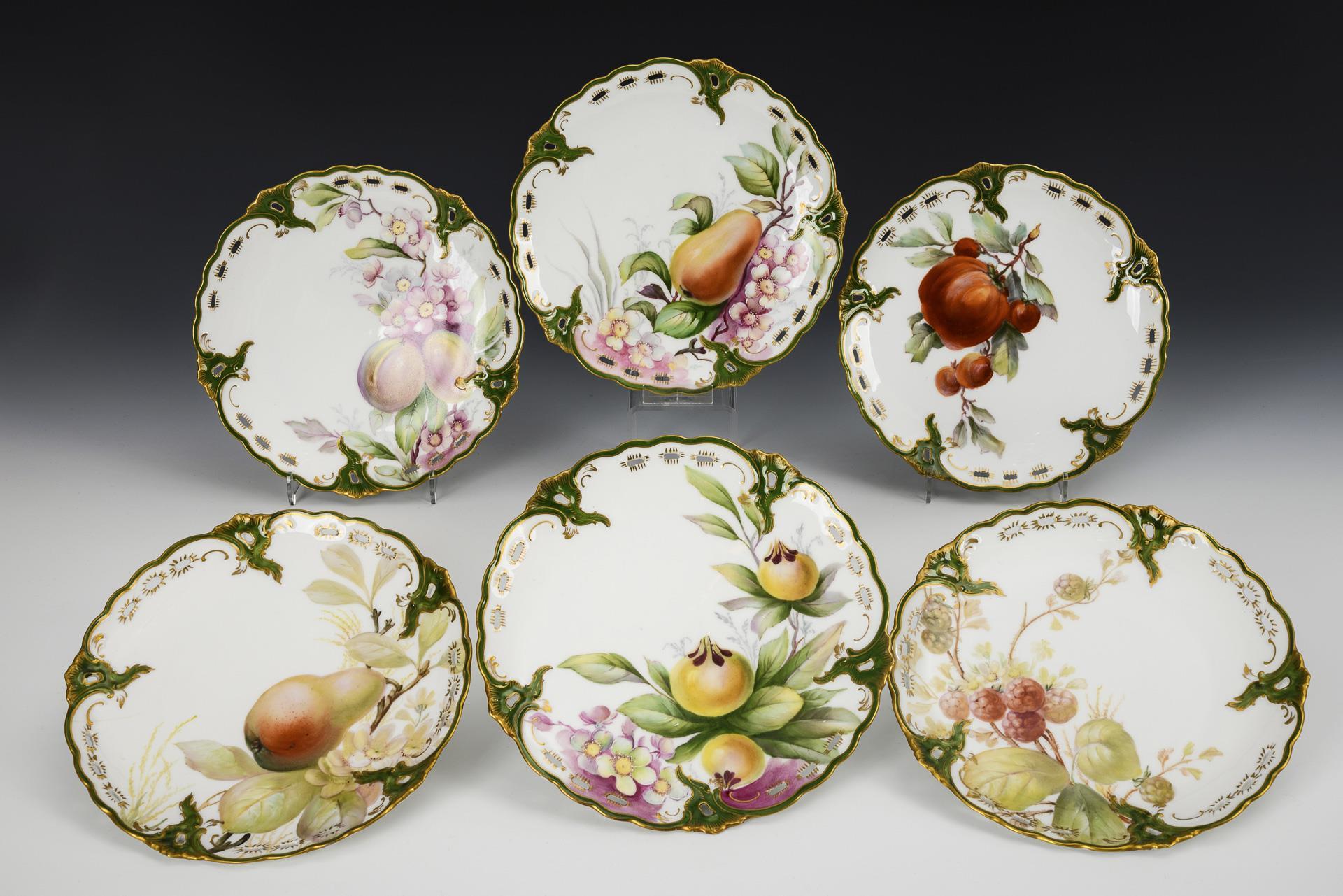 6 Durchbruchteller mit Fruchtmalerei. Nymphenburg.
