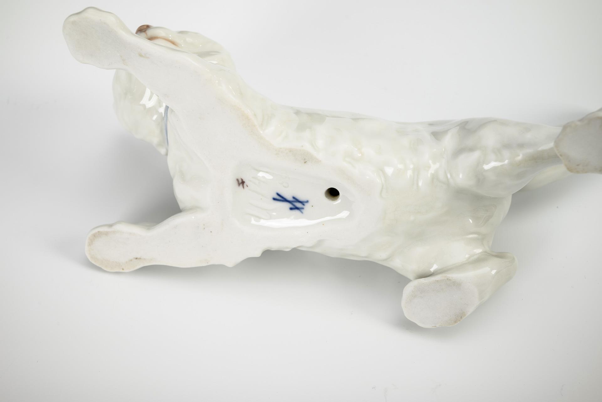 Schwanzspitze, linke Hinterpfote und rechtes Ohr restauriert, partiell Glasur-Krakelee.
