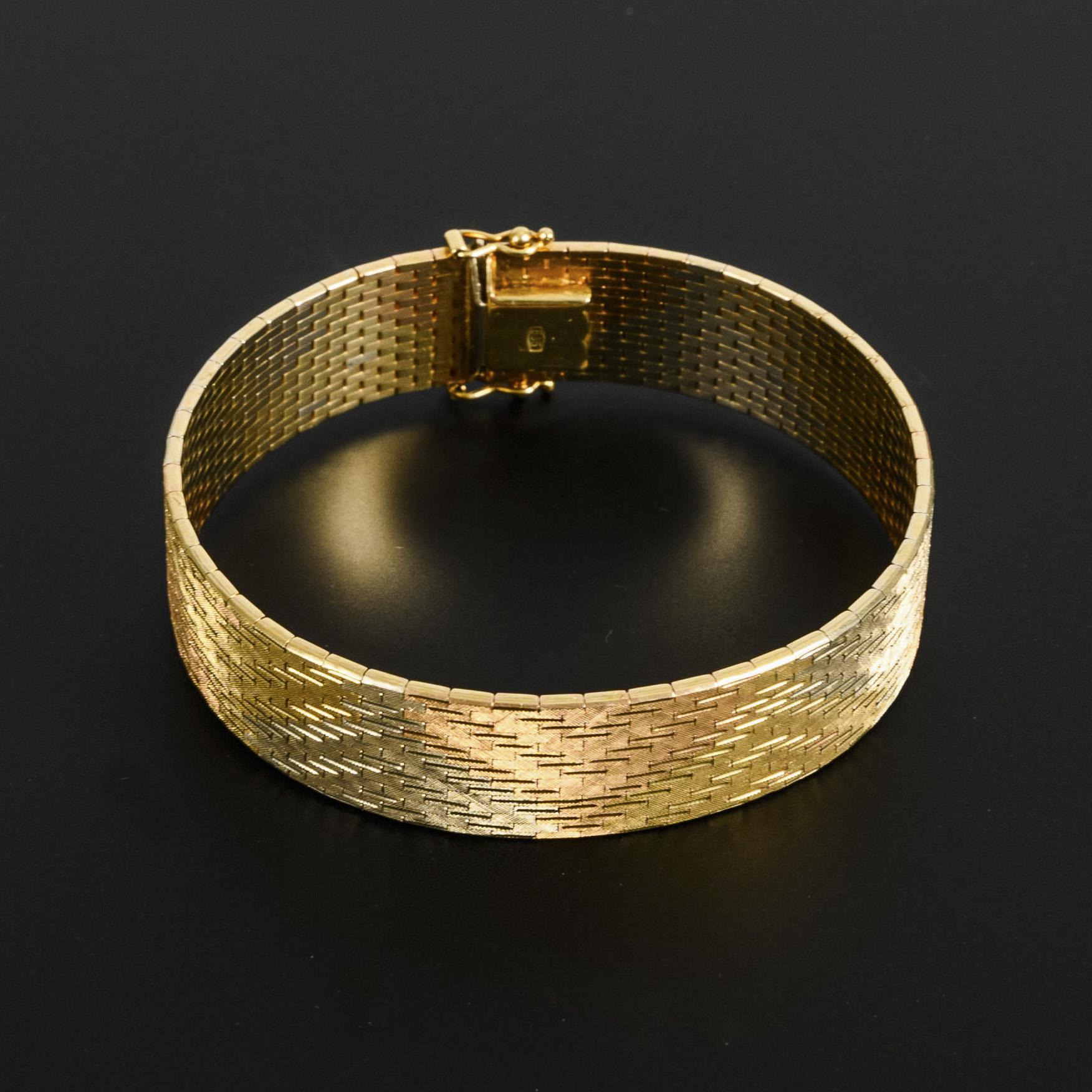 Gelb-/Rosé- und Weißgold 585 gestempelt. 19 x 1,5 cm. 45,2 g.
