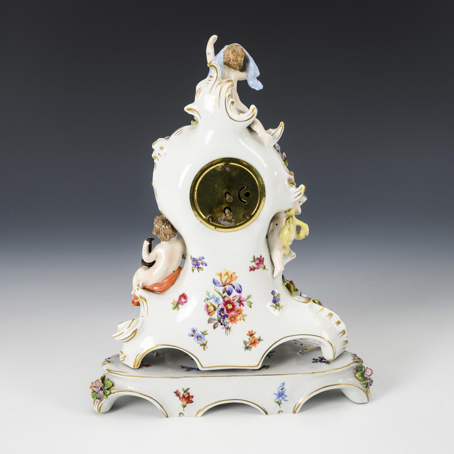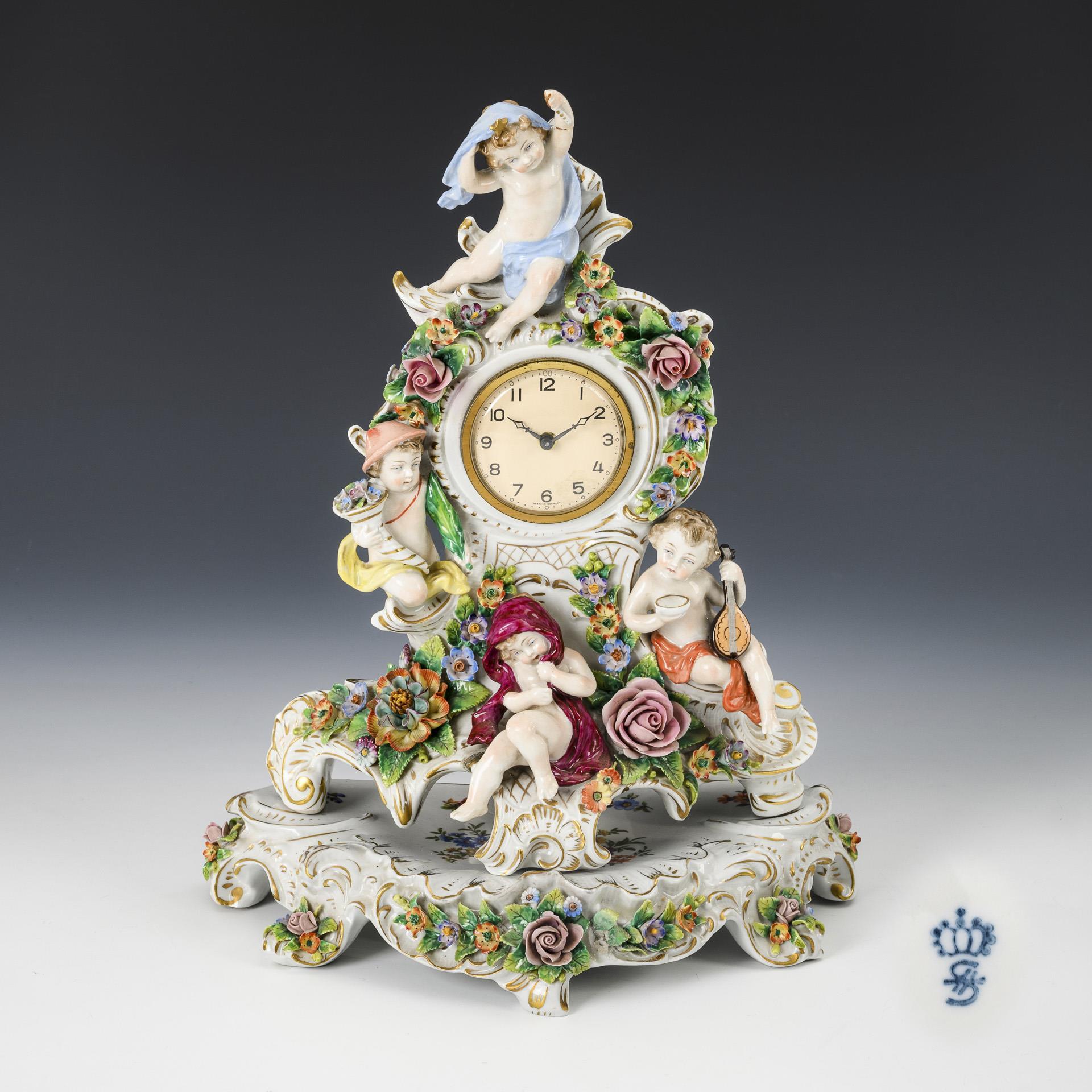 Figürliche Porzellanuhr mit Sockel. Sitzendorf.