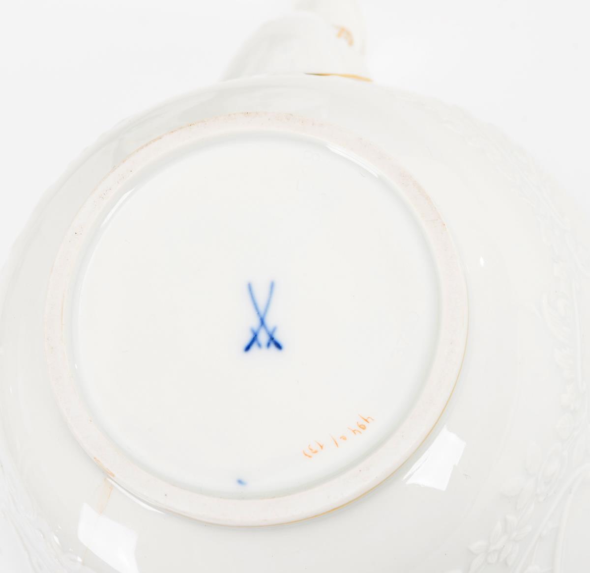 Form "Marseille". 2 Kaffeekannen (H 24 und 19,5 cm) und 1 Teekanne (H 12,5 cm). Minimale Bestoßung an 1 Deckelknauf, 2 Deckelnasen fehlen.