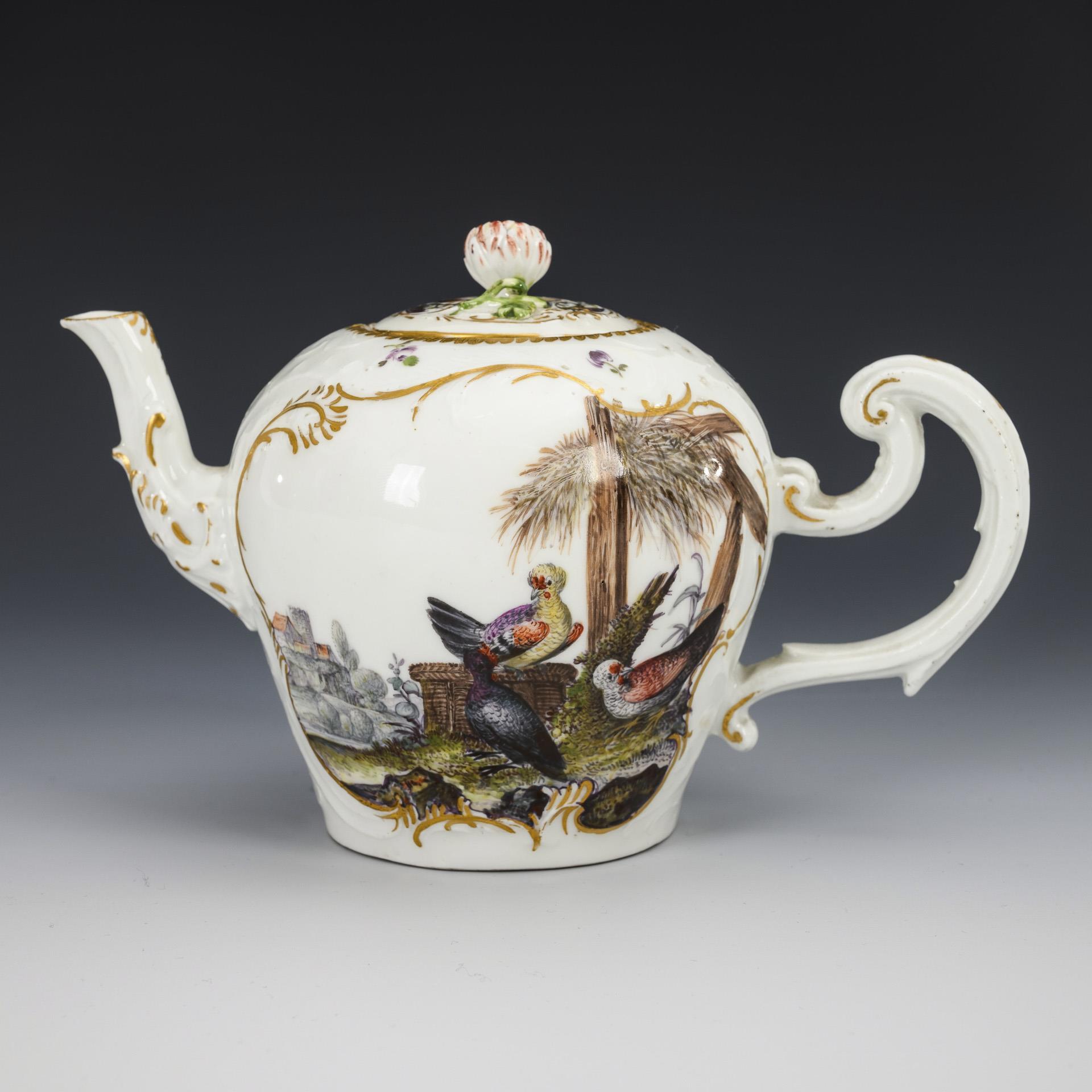 Barockes Teekännchen mit Vogelmalerei. Meissen.