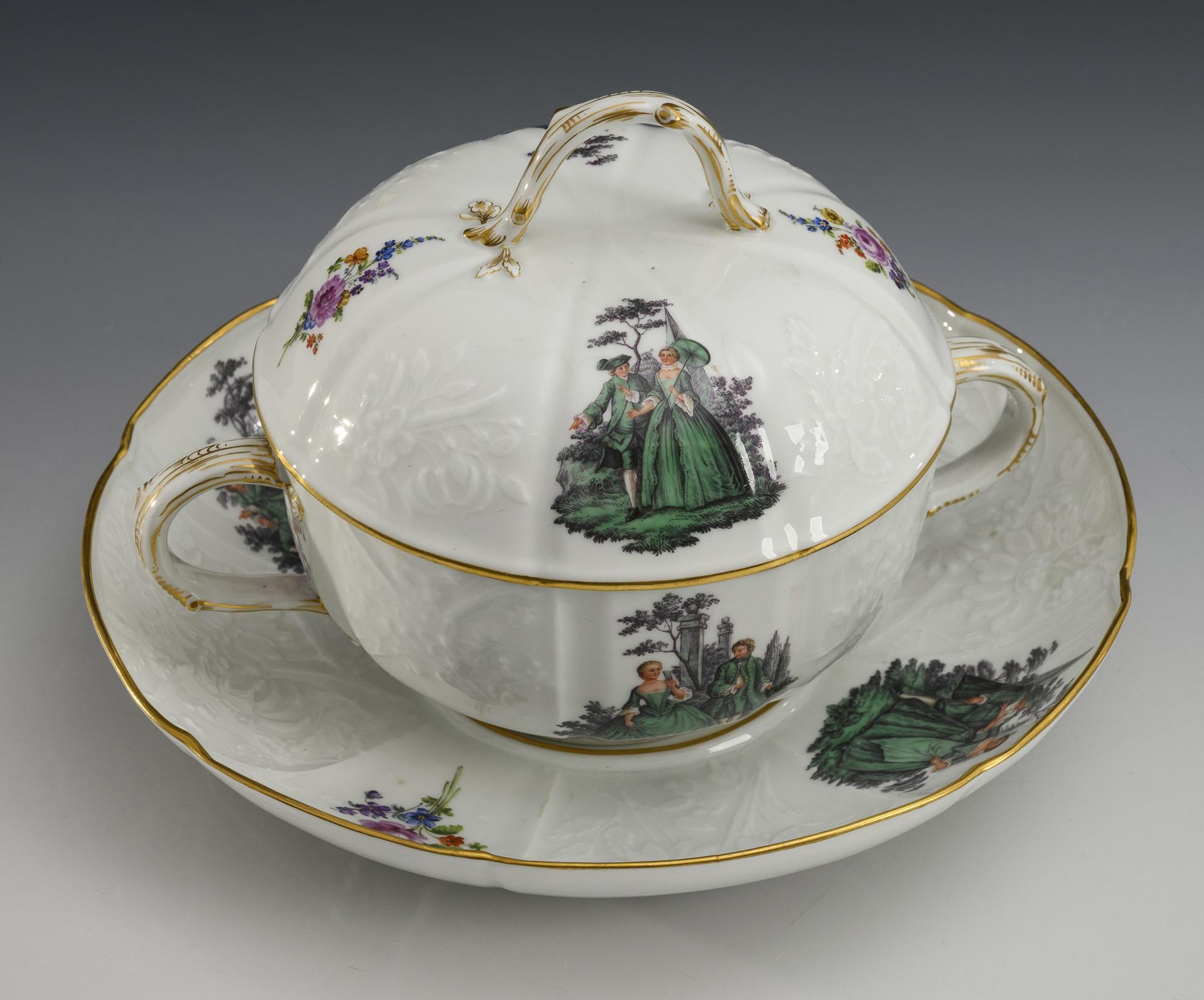 Wöchnerinnenterrine mit Watteau-Malerei. Meissen.