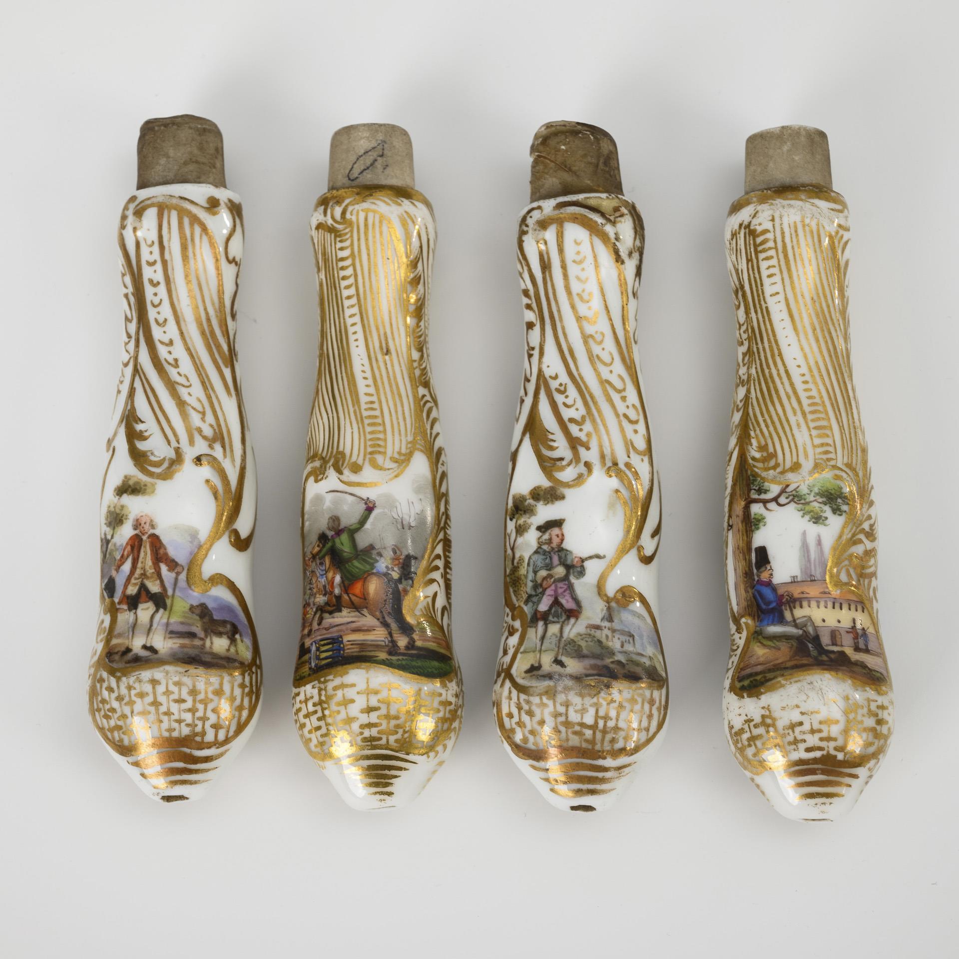 4 Messergriffe mit Figurenmalerei.