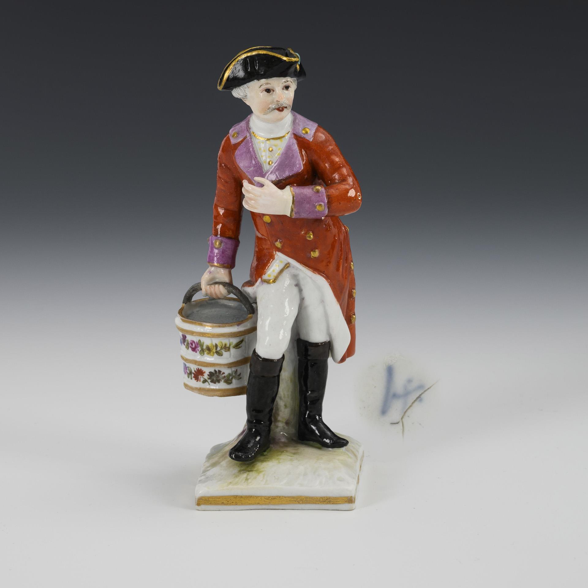 Figur eines barocken Soldaten, einen Wassereimer tragend. Linke Hand restauriert.