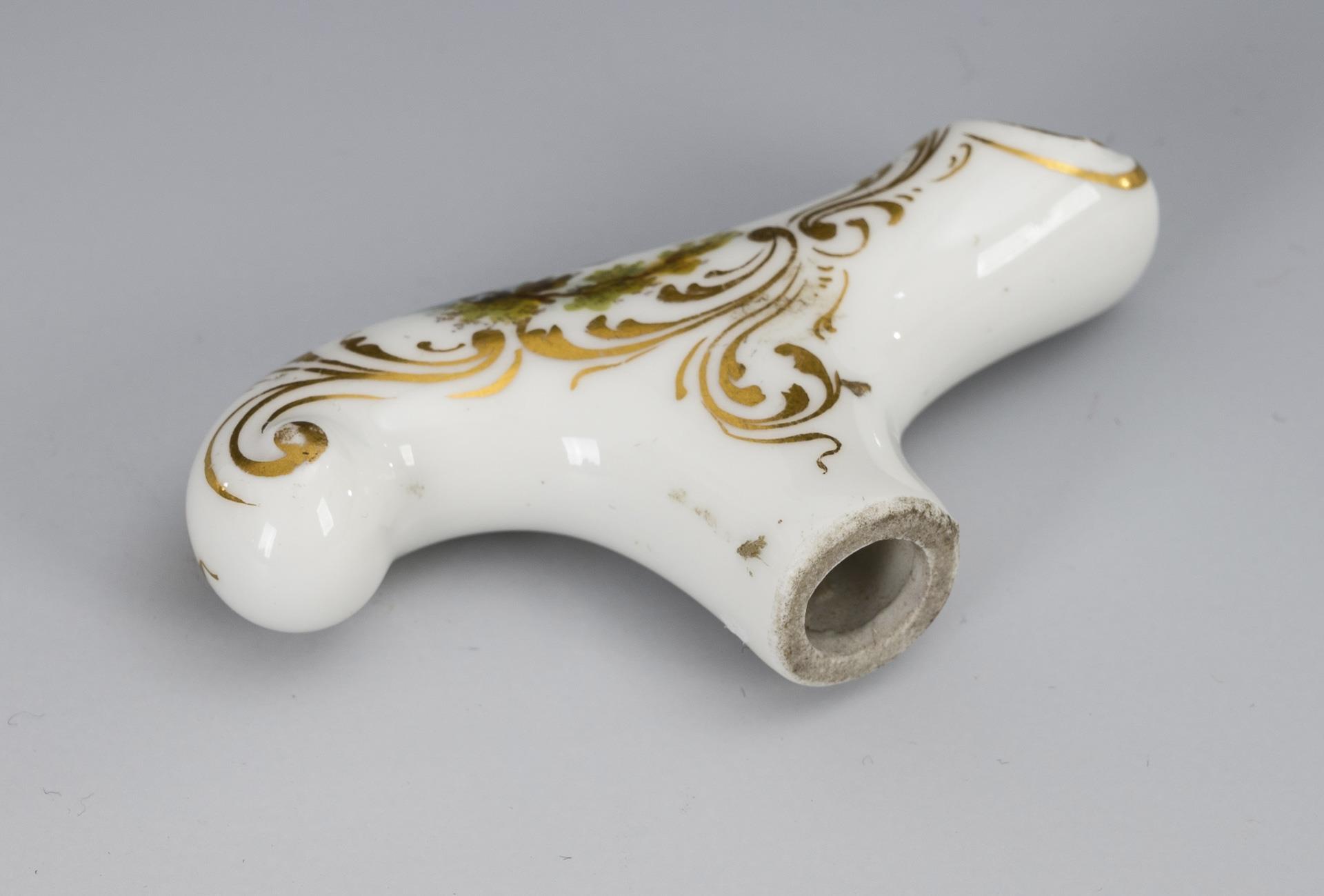 Kleiner Stockgriff mit Watteau-Malerei. Meissen.