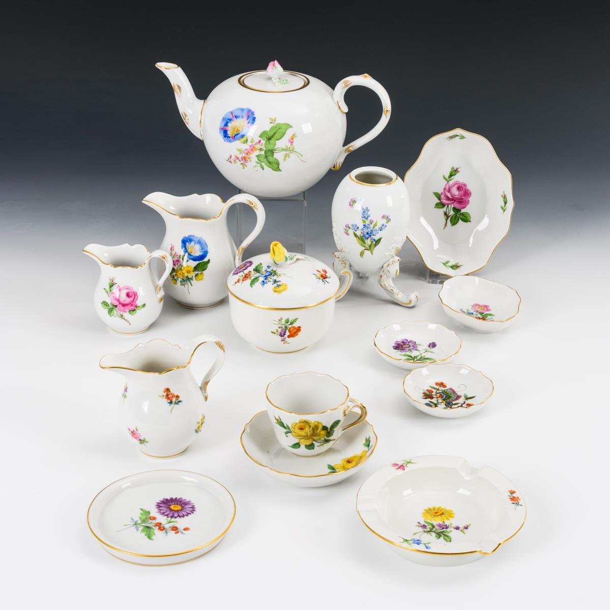 Konvolut Geschirr mit Blumenmalerei. Meissen.