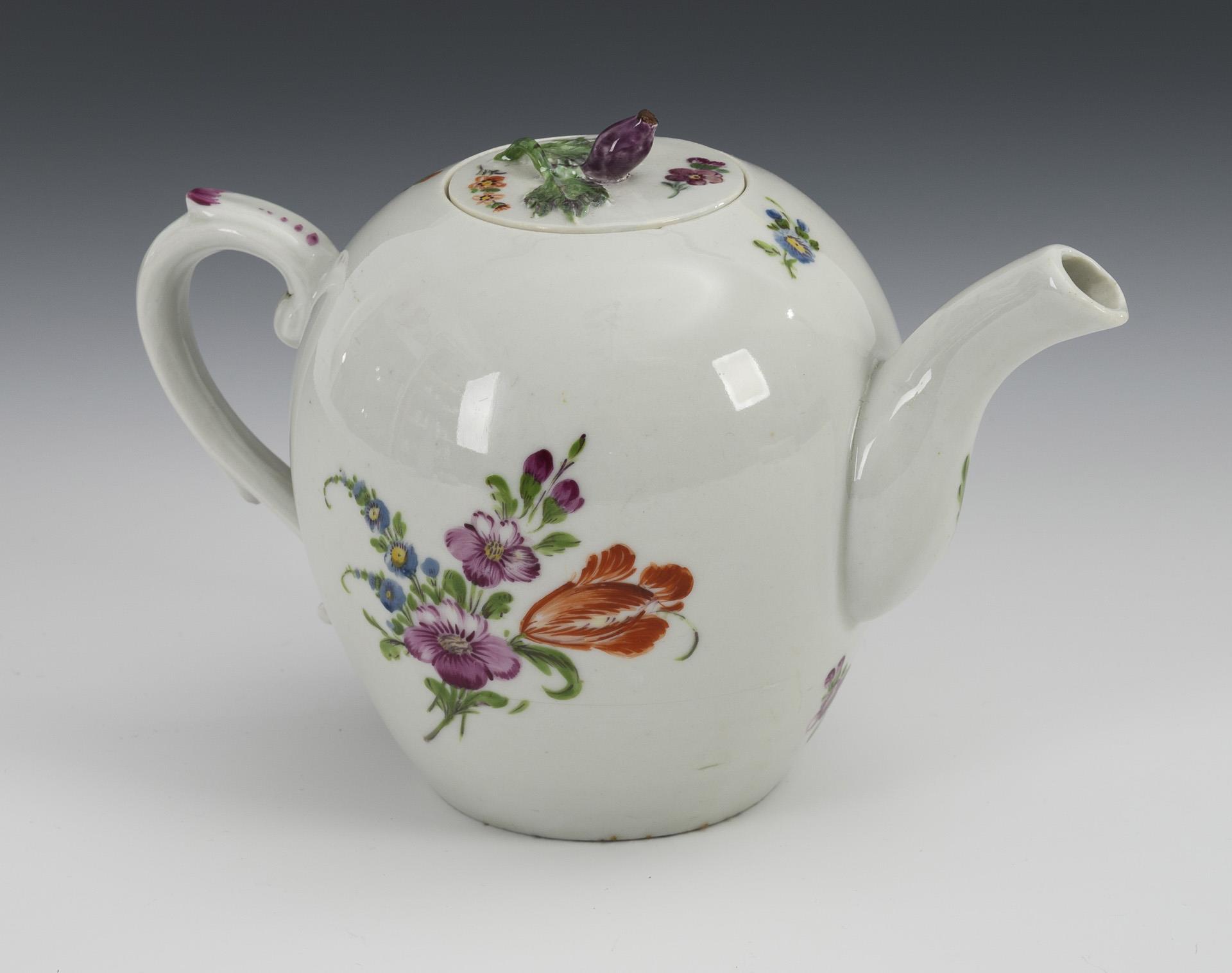 Barockes Teekännchen mit Blumenmalerei. Aelteste Volkstedter.