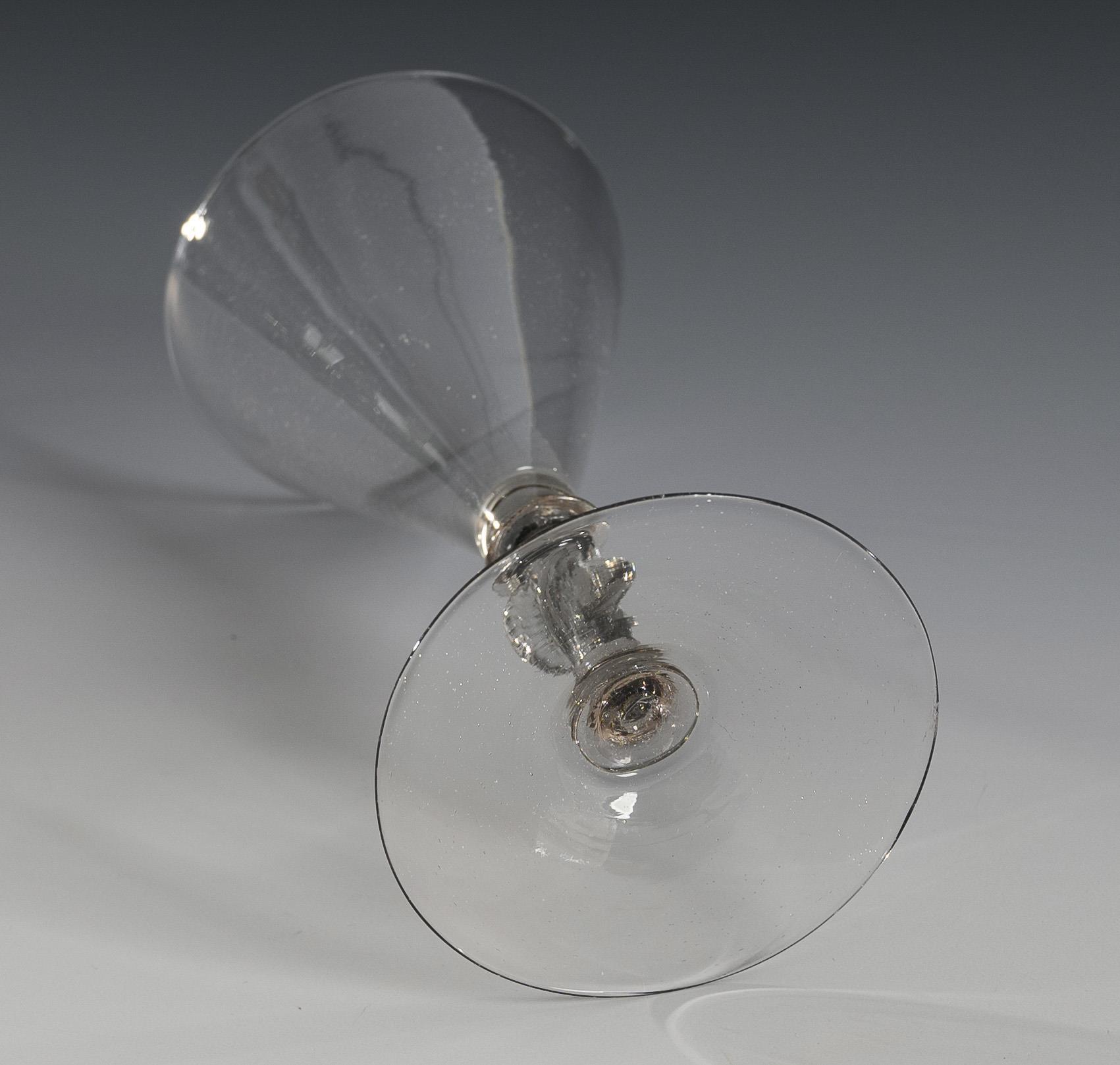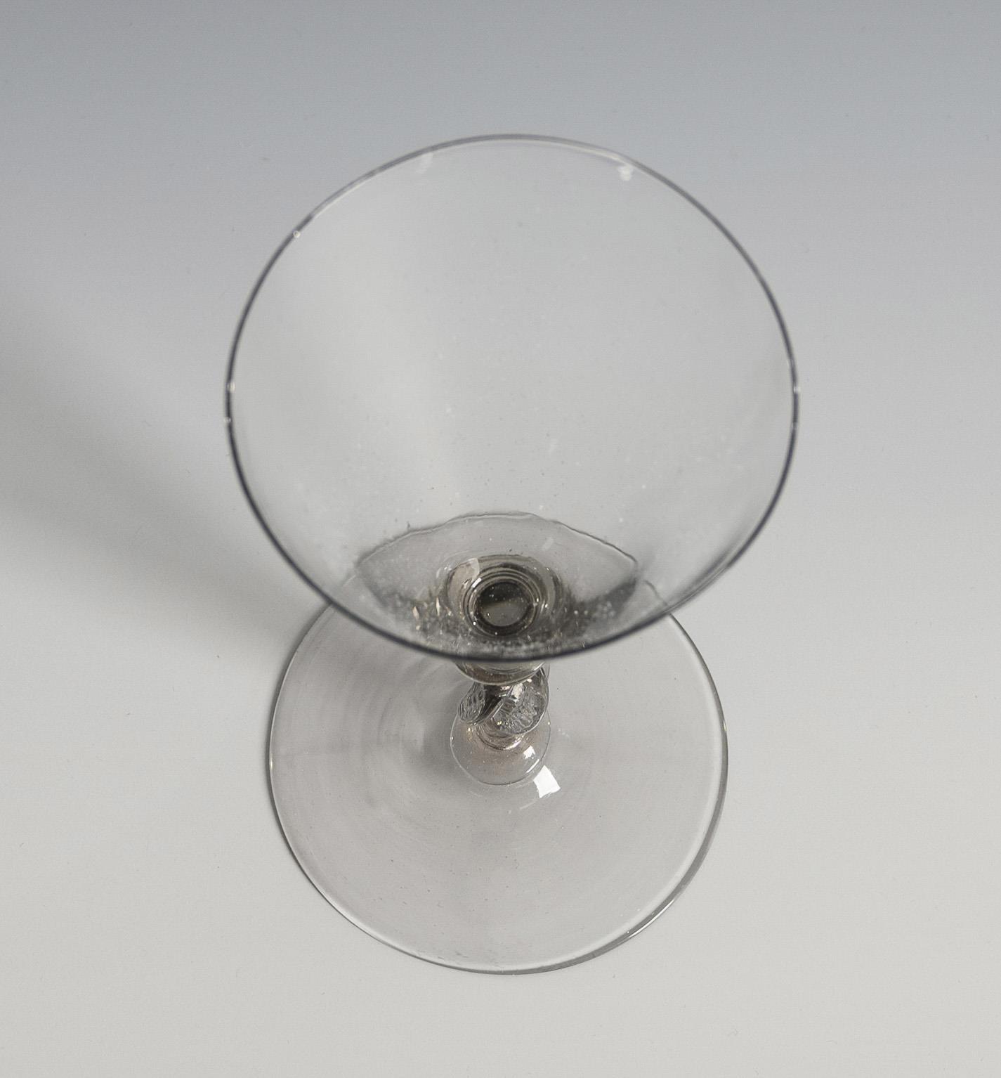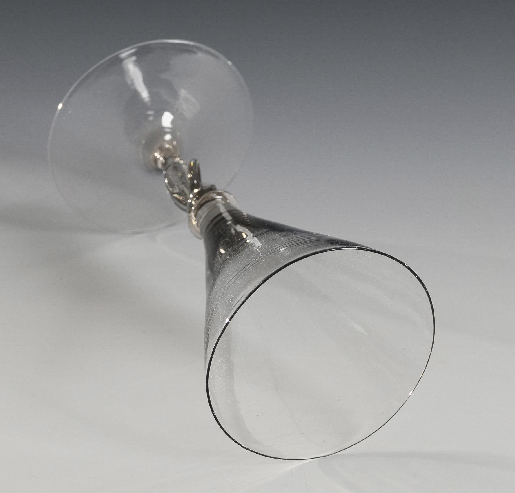 Trichterkuppa, vierfach längs gekniffener und gedrehter Schaft, Rundfuß; Abriss. Leicht krank.