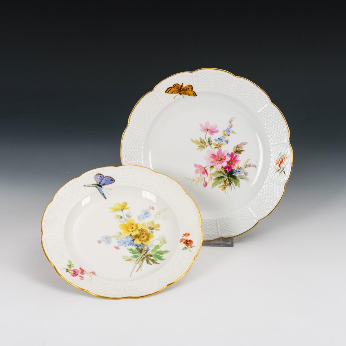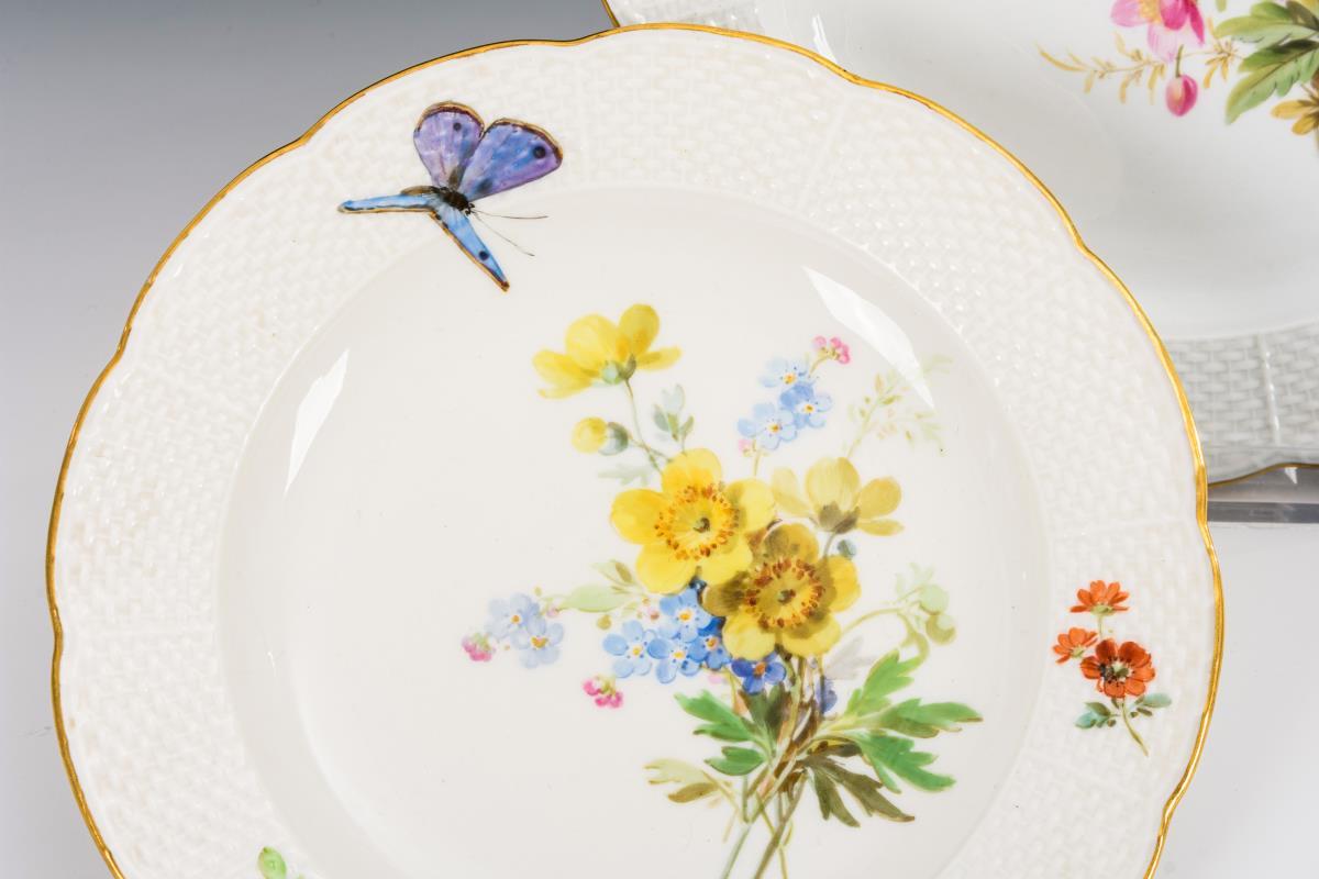 Feine, polychrome Blumen- und Insektenmalerei, goldstaffiert.