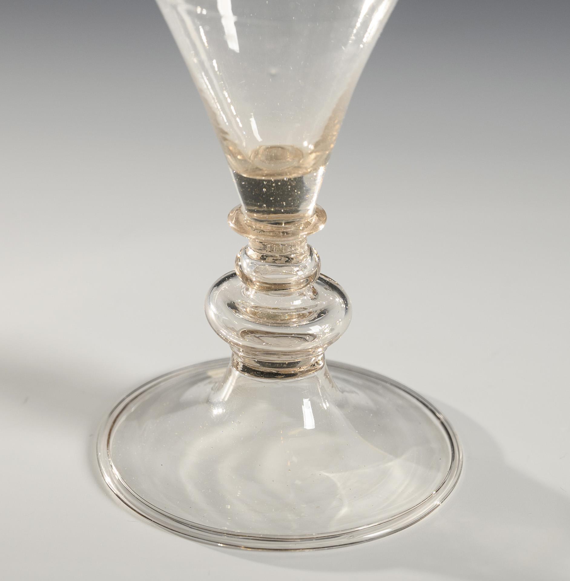 Trichterkuppa, mehrteiliger Hohlbalusterschaft, Rundfuß mit schmal umgeschlagenem Rand; Abriss.
