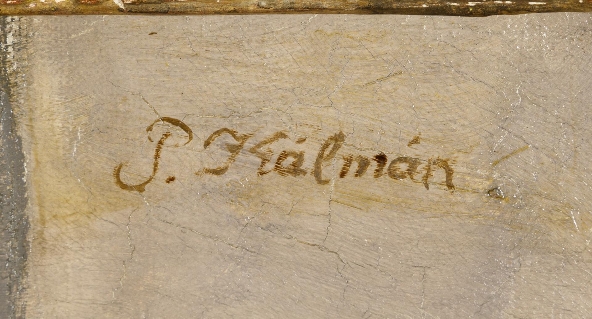 88 x 76 cm. Gerahmt : 107 x 94 cm (Goldstuckrahmen); 9 kg.