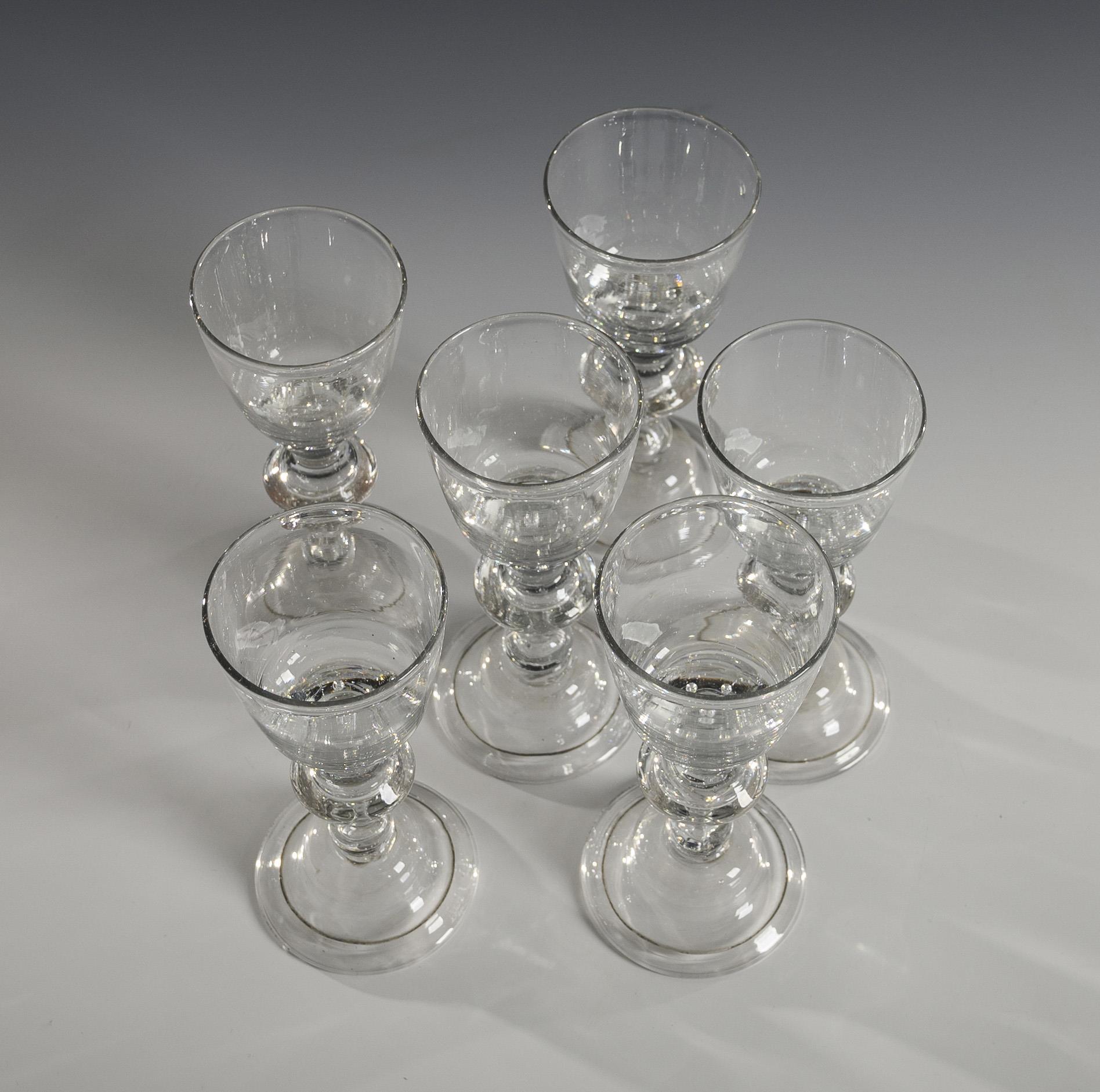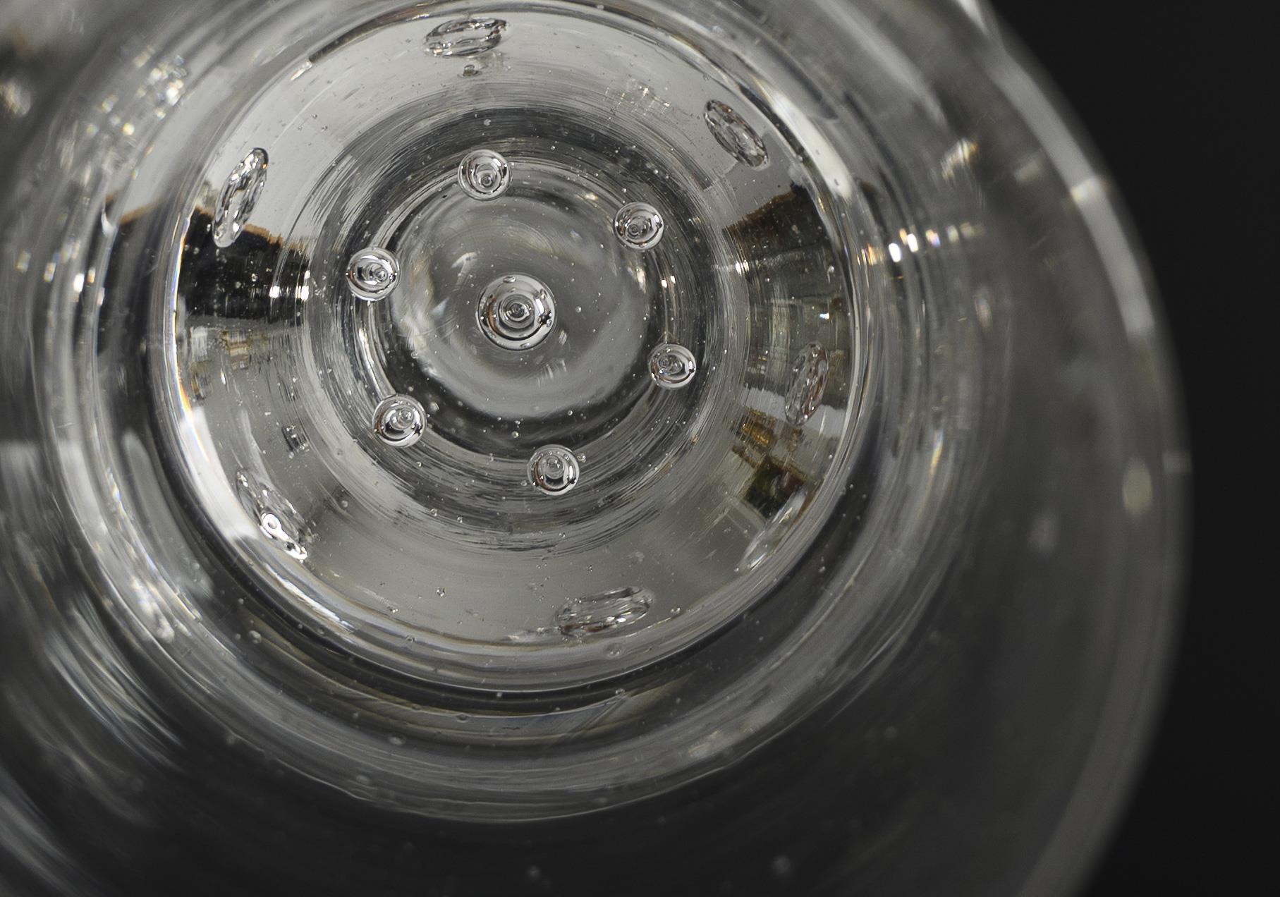 Konische Kuppa mit sieben eingestochenen Luftblasen im massiven Kuppaboden, Balusterschaft mit eingestochener Luftblase, Hutfuß mit umgeschlagenem Rand; Abriss.