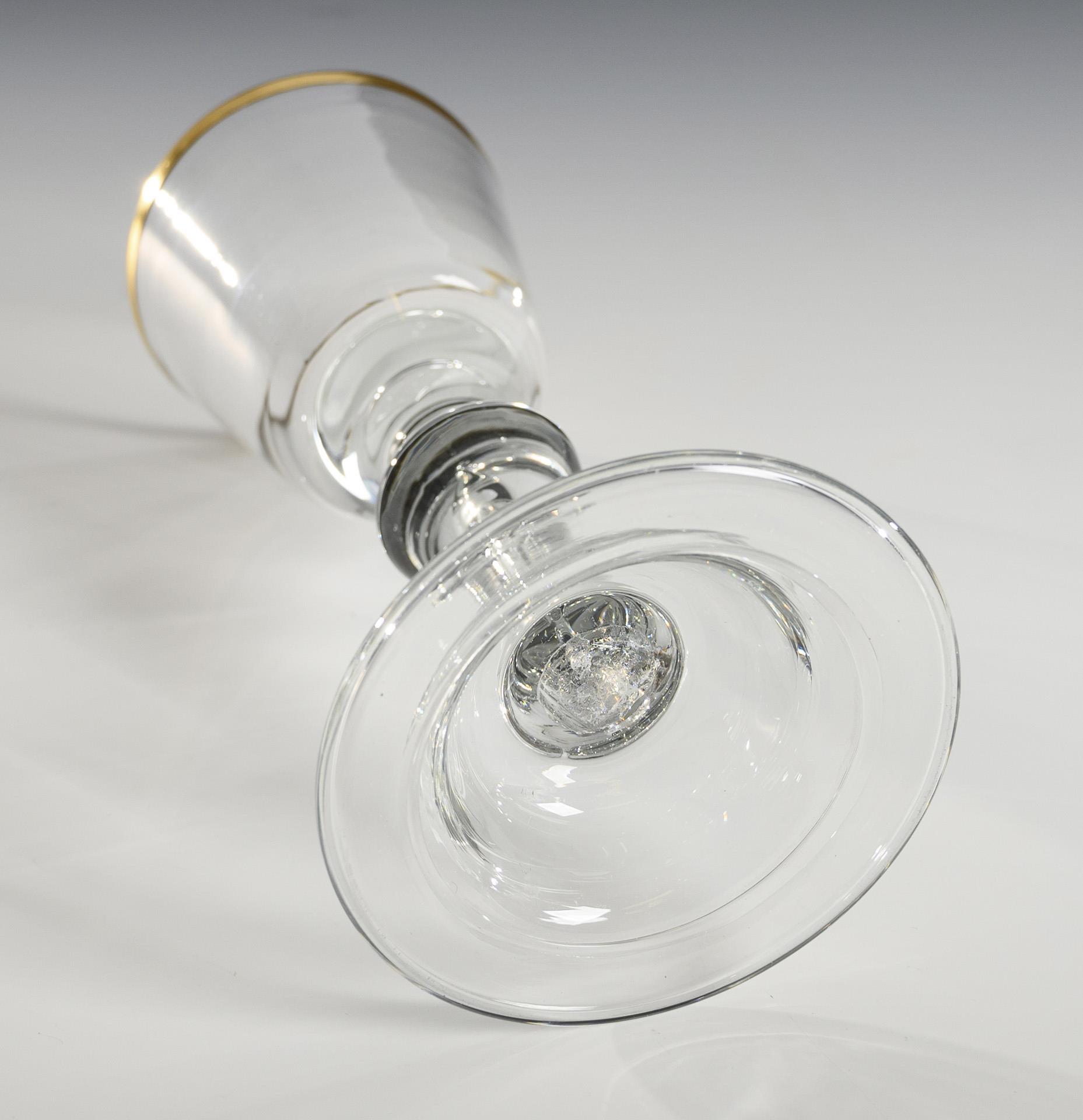 Konische Kuppa mit eingestochener Luftblase im massiven Kuppaboden, Balusterschaft mit eingestochener Luftblase, Hutfuß mit umgeschlagenem Rand; Abriss.