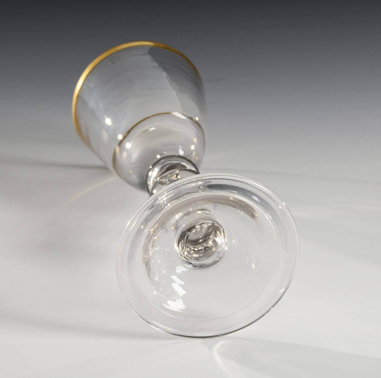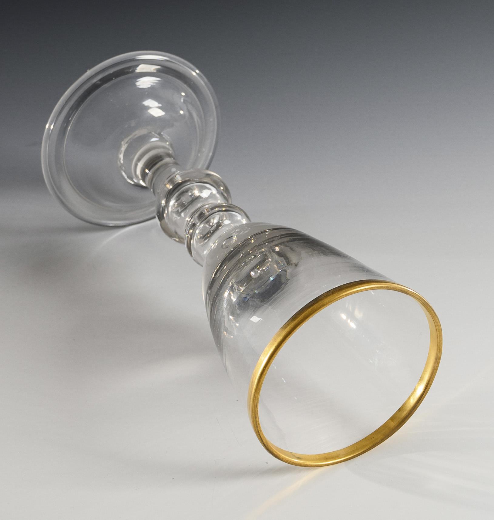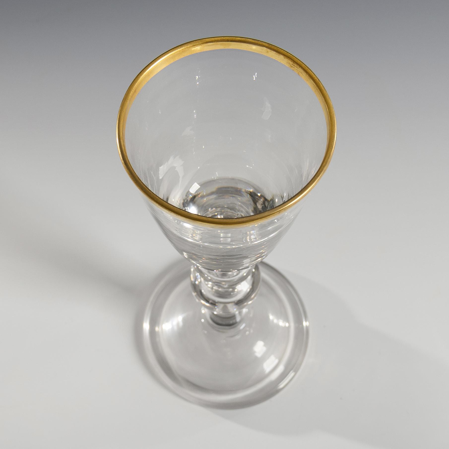 Farbloses, leicht manganstichiges Glas, Goldrand. H 23 cm.