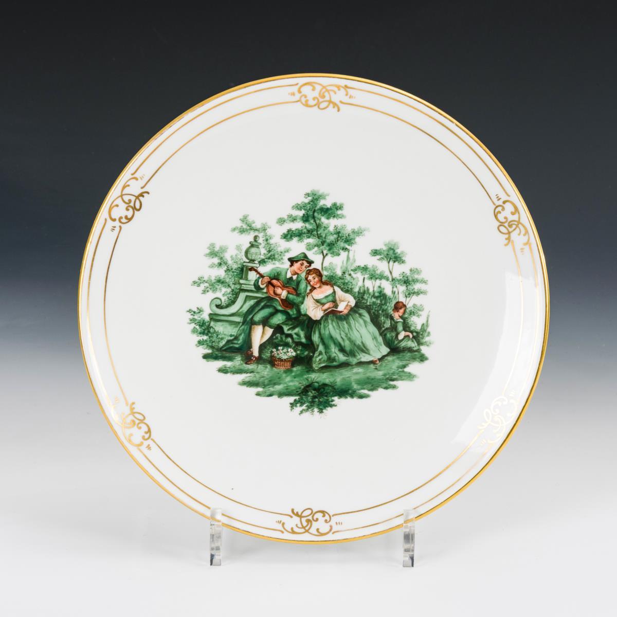 Wandteller mit grüner Watteaumalerei. Meissen.