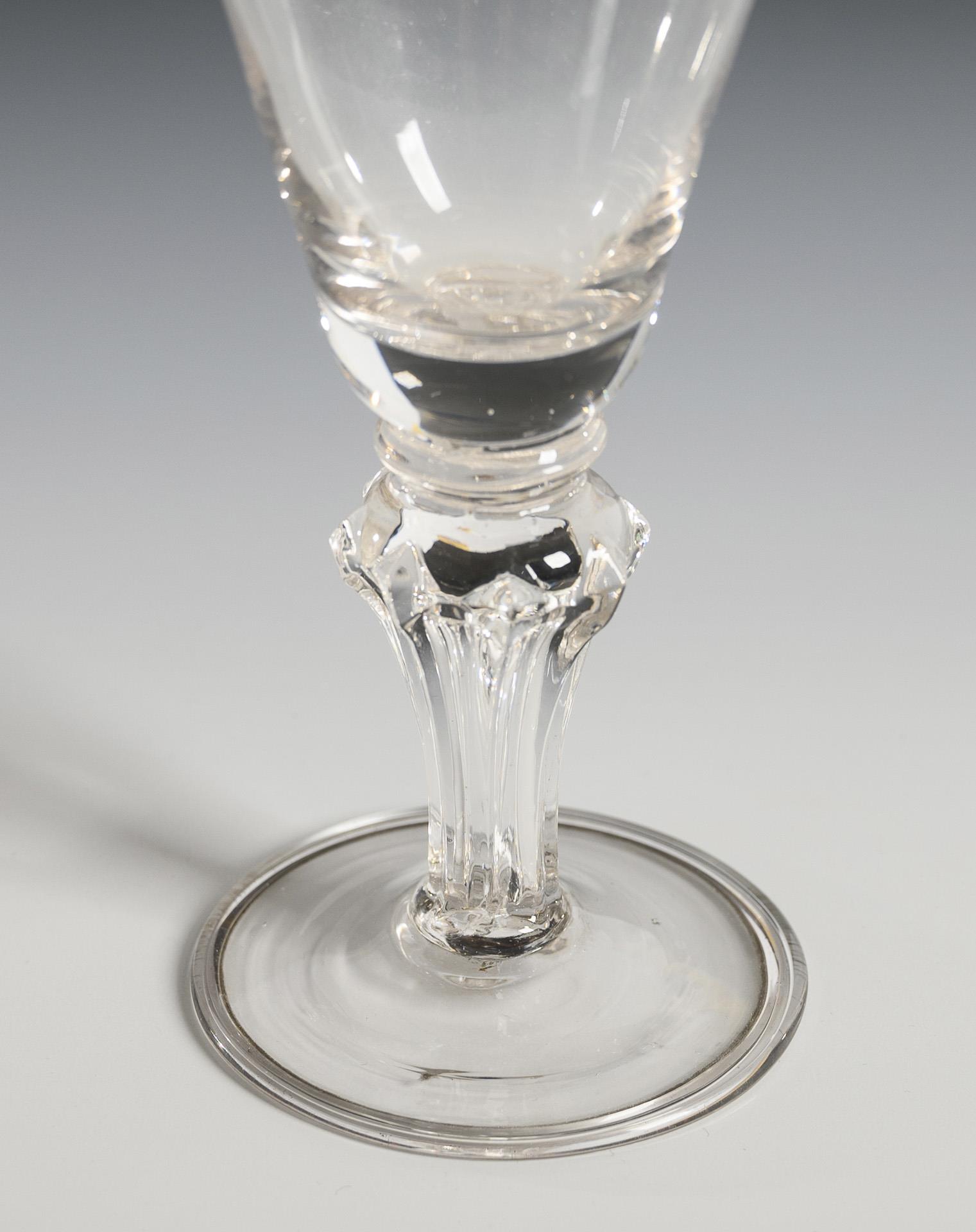 Trichterkuppa, pseudofacettierter Schaft, Rundfuß mit umgeschlagenem Rand; Abriss.