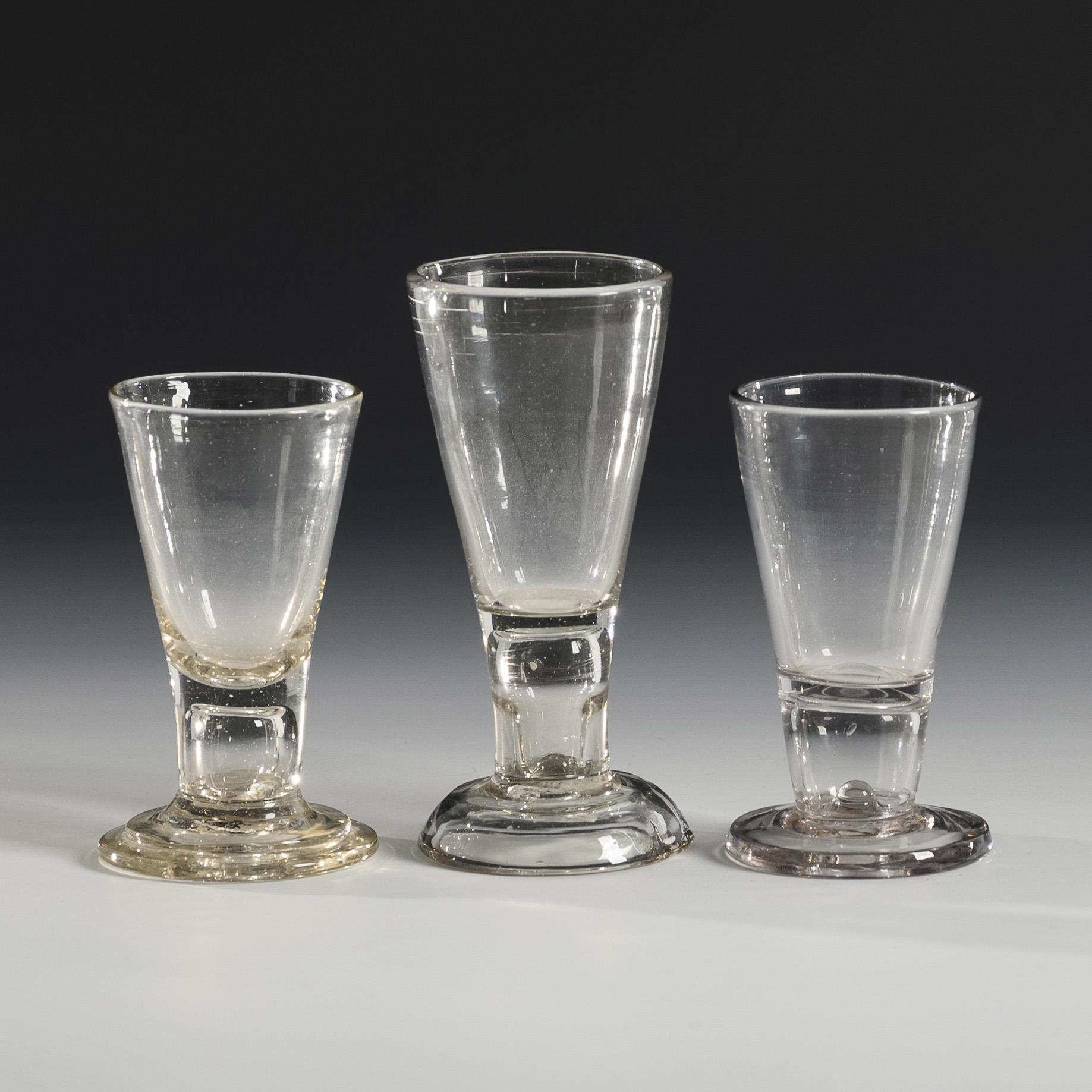 Verschiedene Gläser mit konischer, in den Hohlschaft übergehender Kuppa, Rundfuß (darunter 1x gewölbt); Abriss.