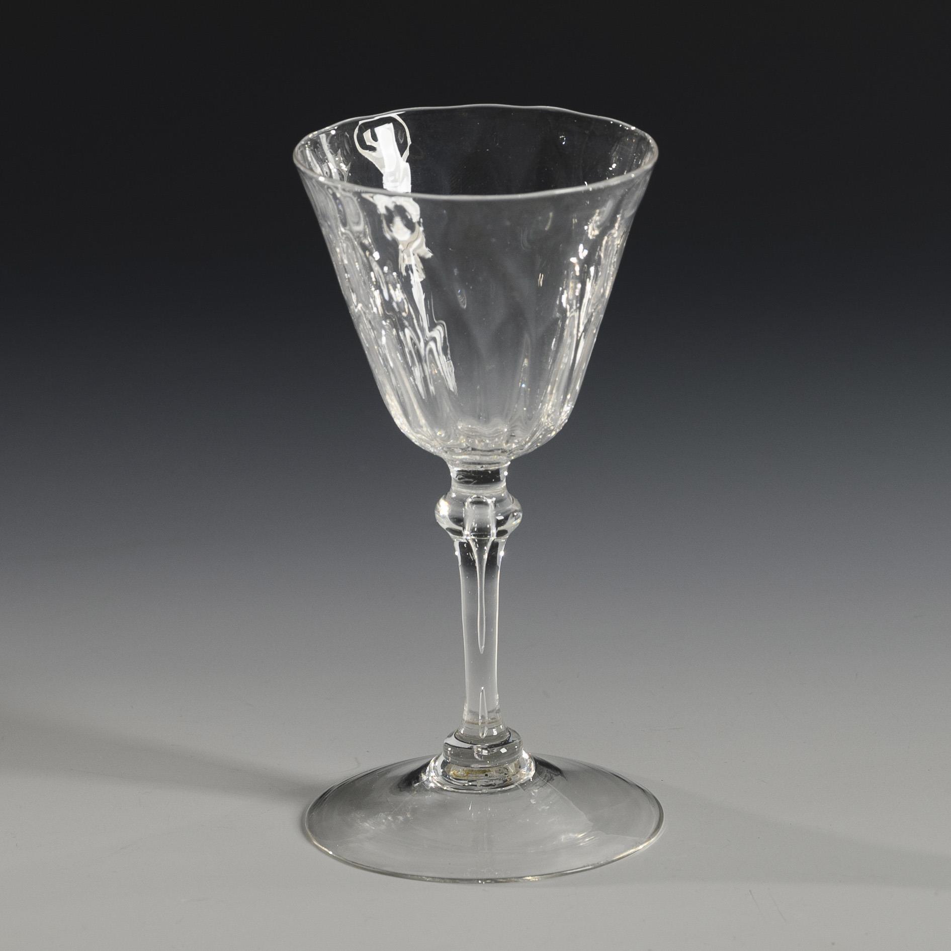 Konische, wabenoptisch geblasene Kuppa, schlanker Balusterstängel mit eingestochener Luftblase, Rundfuß; Abriss .