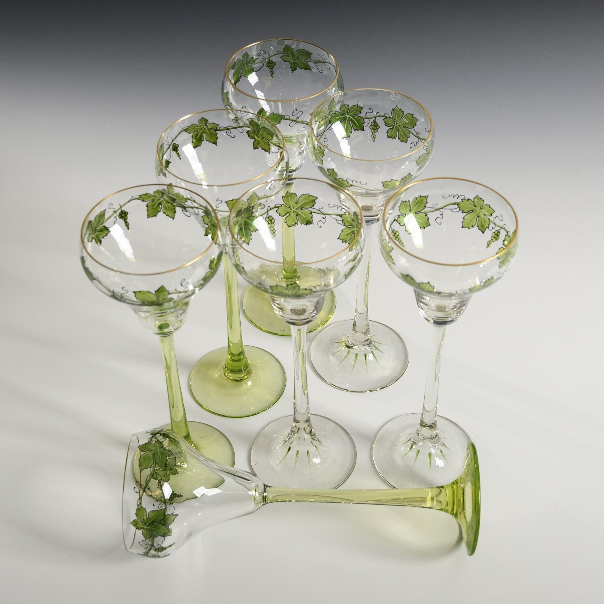 4+3 Weingläser mit Weinlaubdekor. Theresienthal.