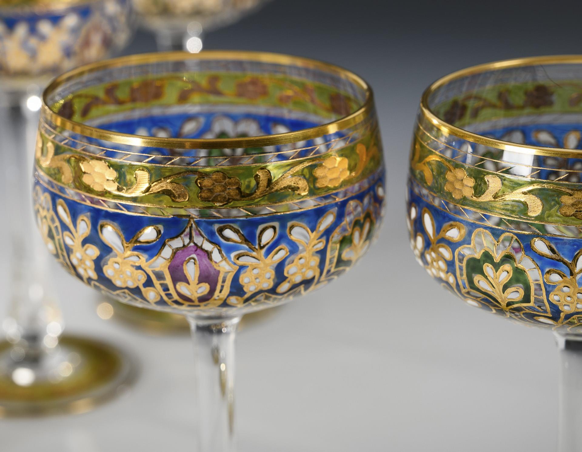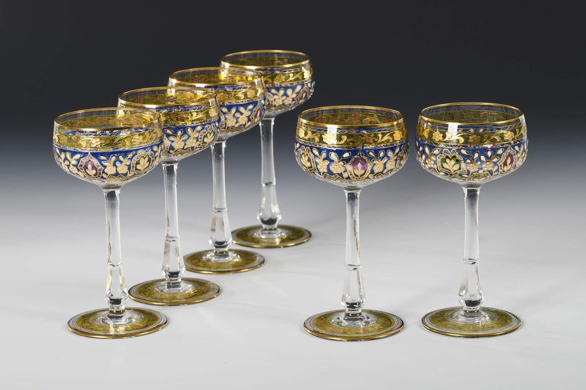 6 Stängelgläser "Jodhpur". Josephinenhütte.