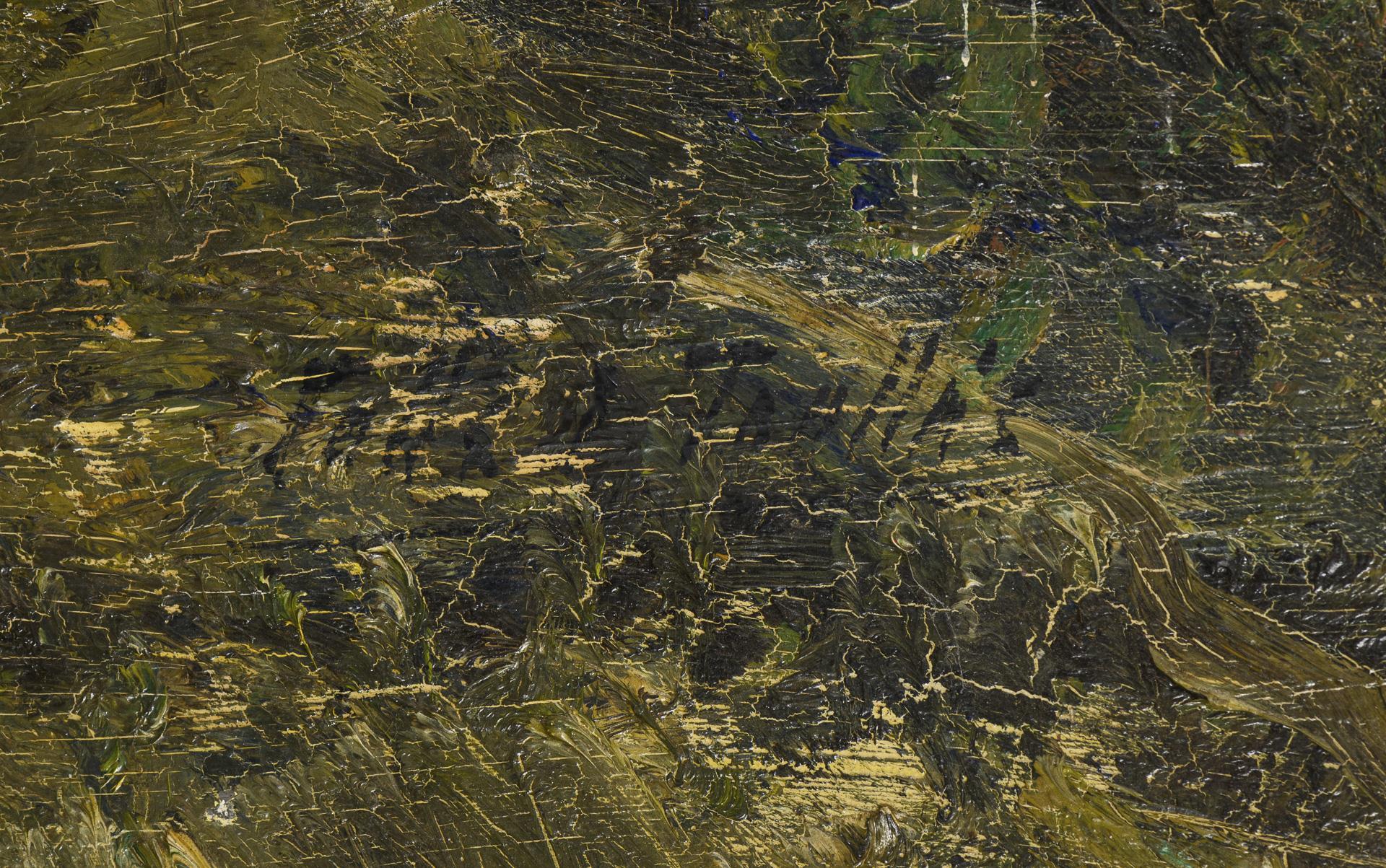 Undeutlich signiert: Expressive Waldlandschaft