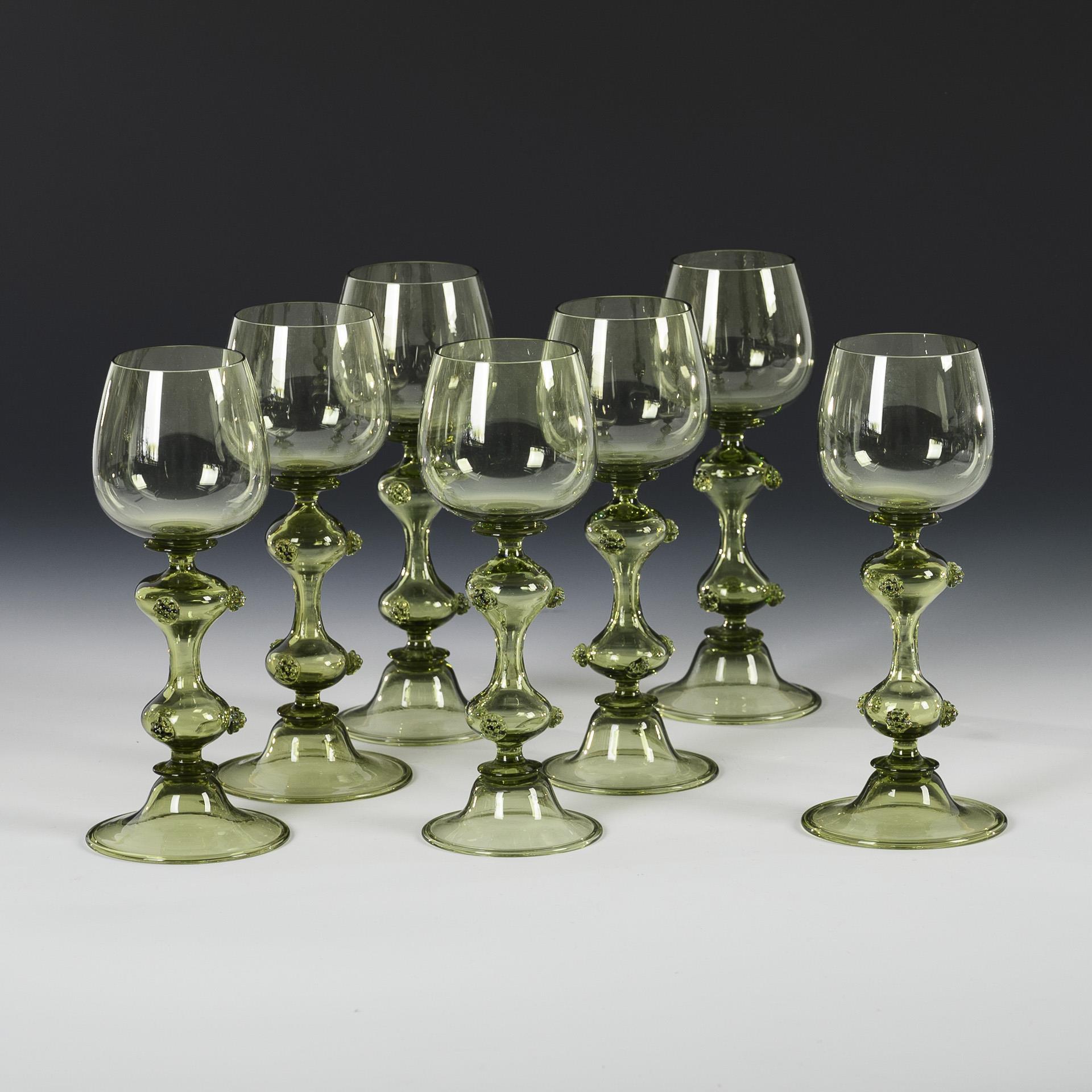 Bauchige Kuppa, Doppelbalusterhohlschaft mit aufgelegten Beerennuppen, hutartiger Fuß mit umgeschlagenem Rand; Abriss.