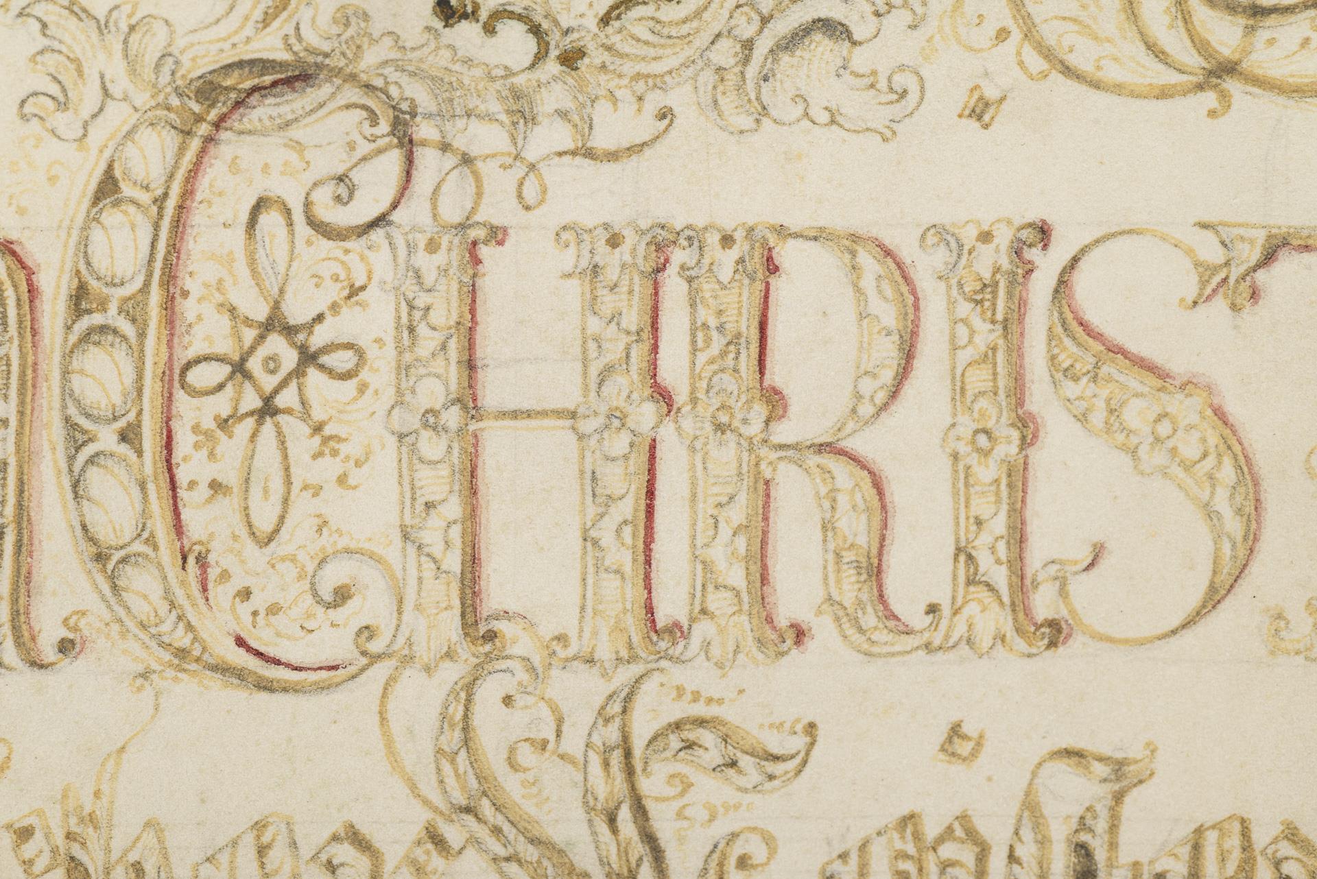 Federzeichnung auf Pergament, Goldleistenrahmen. Urkunde 63 x 62 cm, Rahmen 75 x 74 cm.