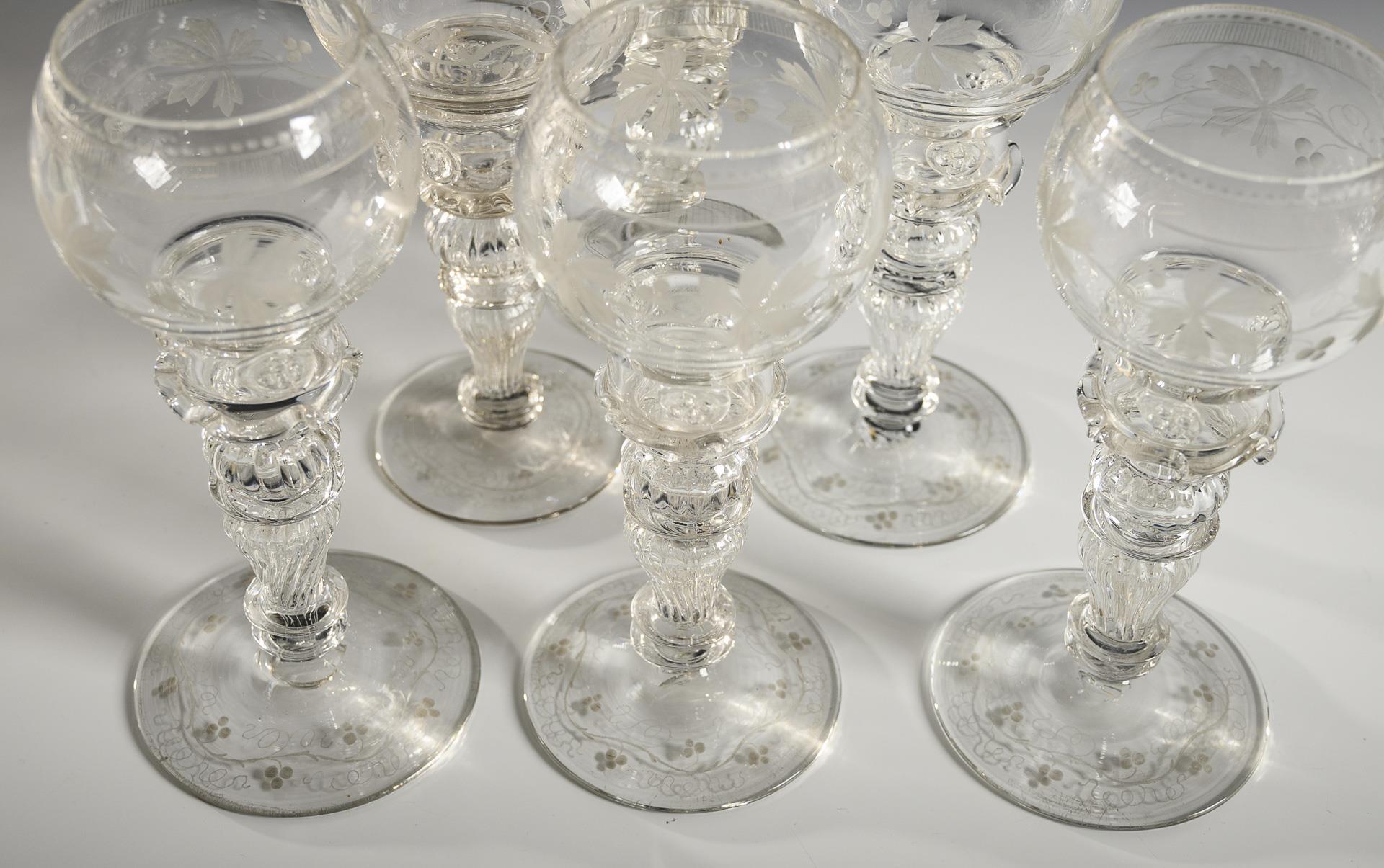 7 Römer mit Weinlaubdekor.
