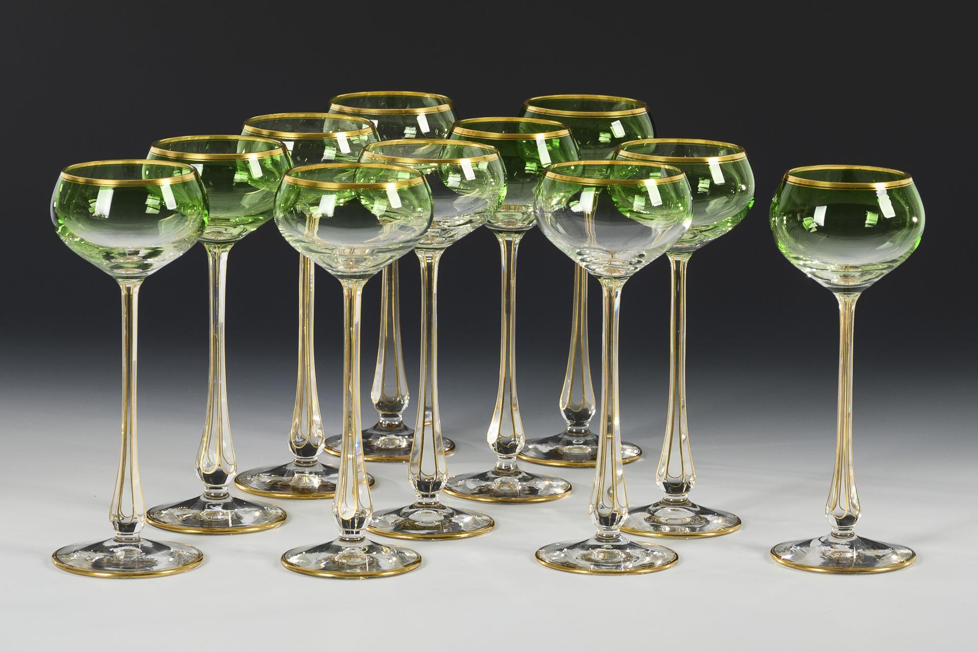 11 Jugendstil-Stängelgläser.