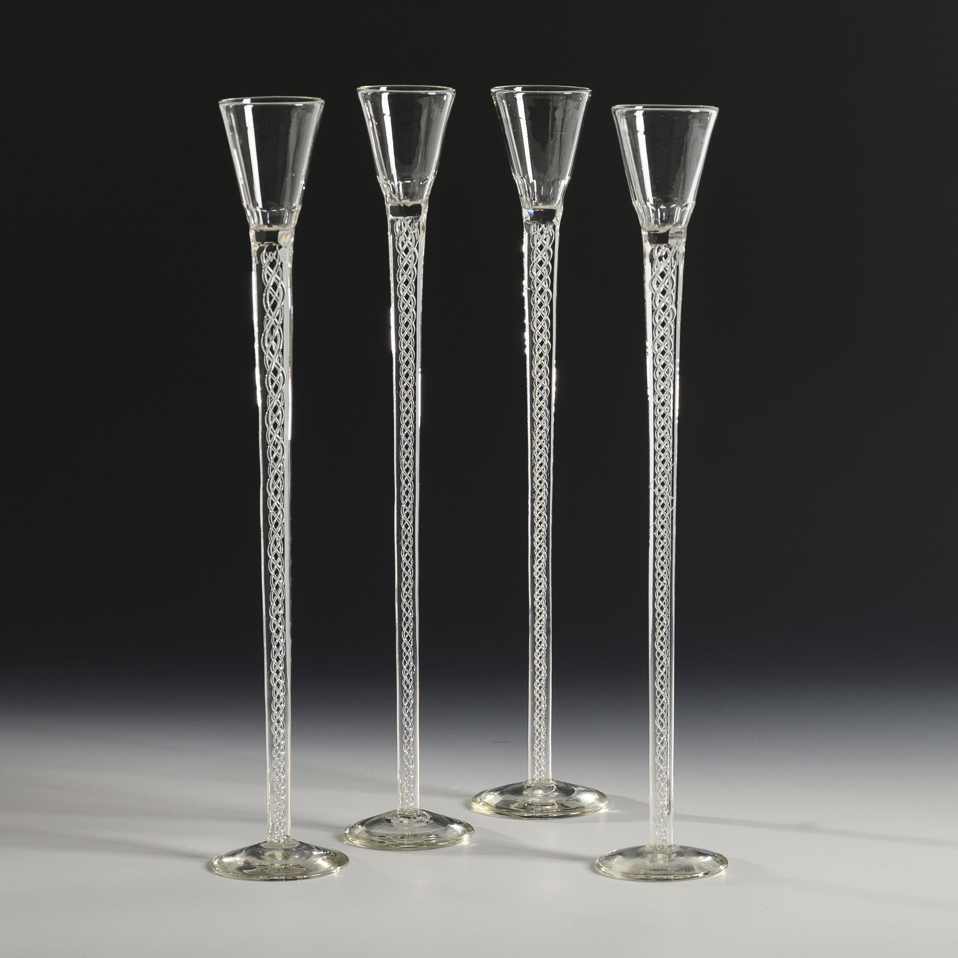 4 große Likörgläser mit Spiralstängeln. Josephinenhütte.