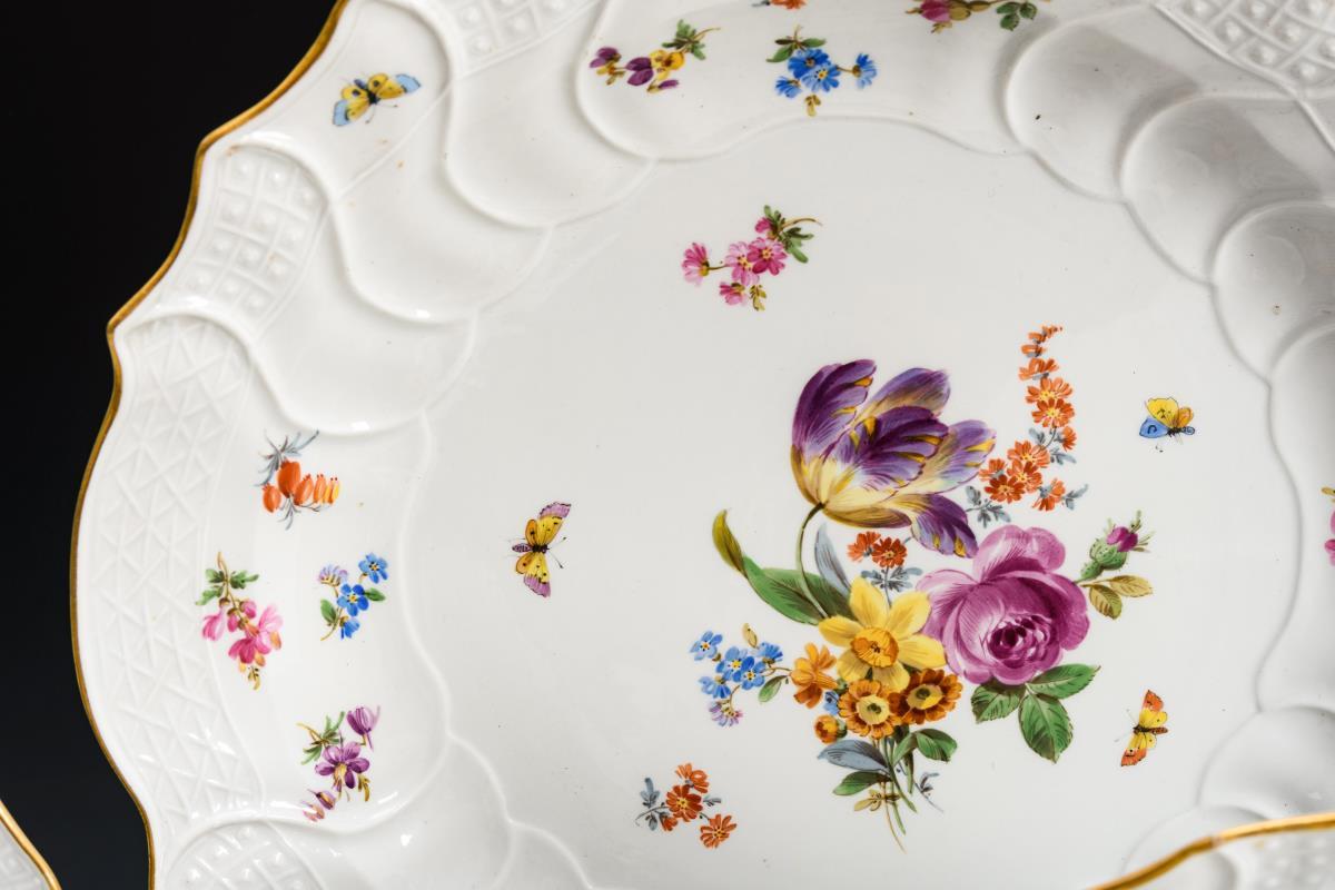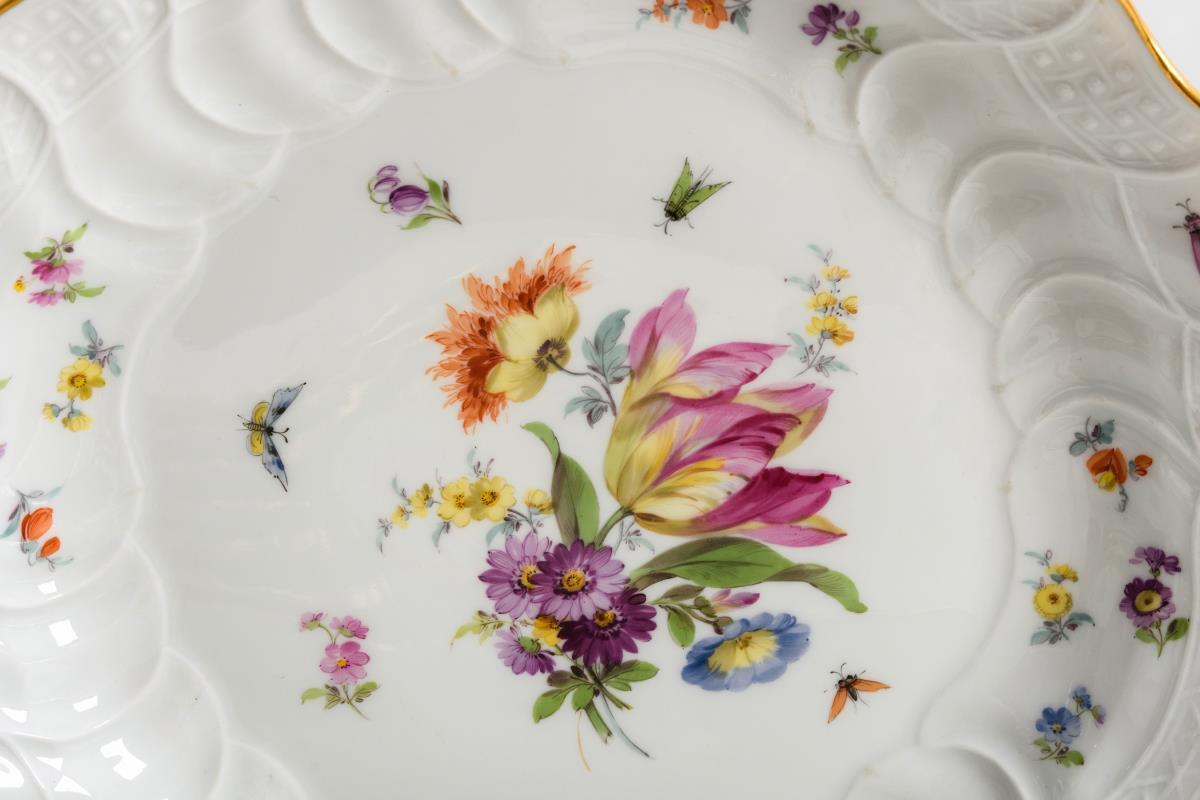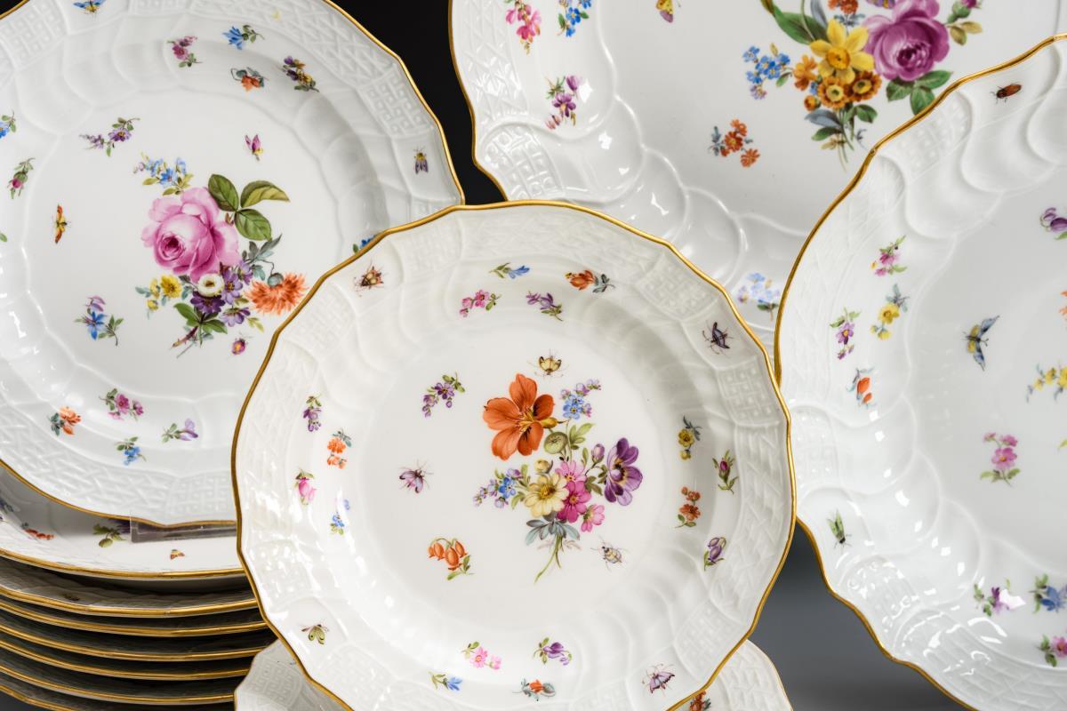 Speiseservice mit Blumen- und Insektenmalerei. Meissen.