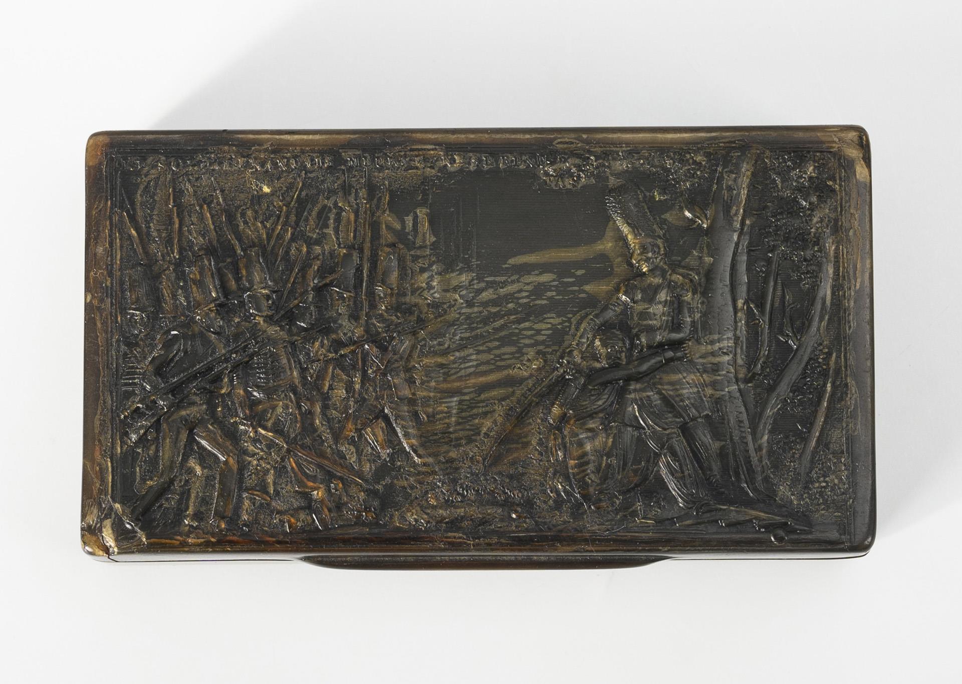 Horntabatiere mit Bataillemotiv.