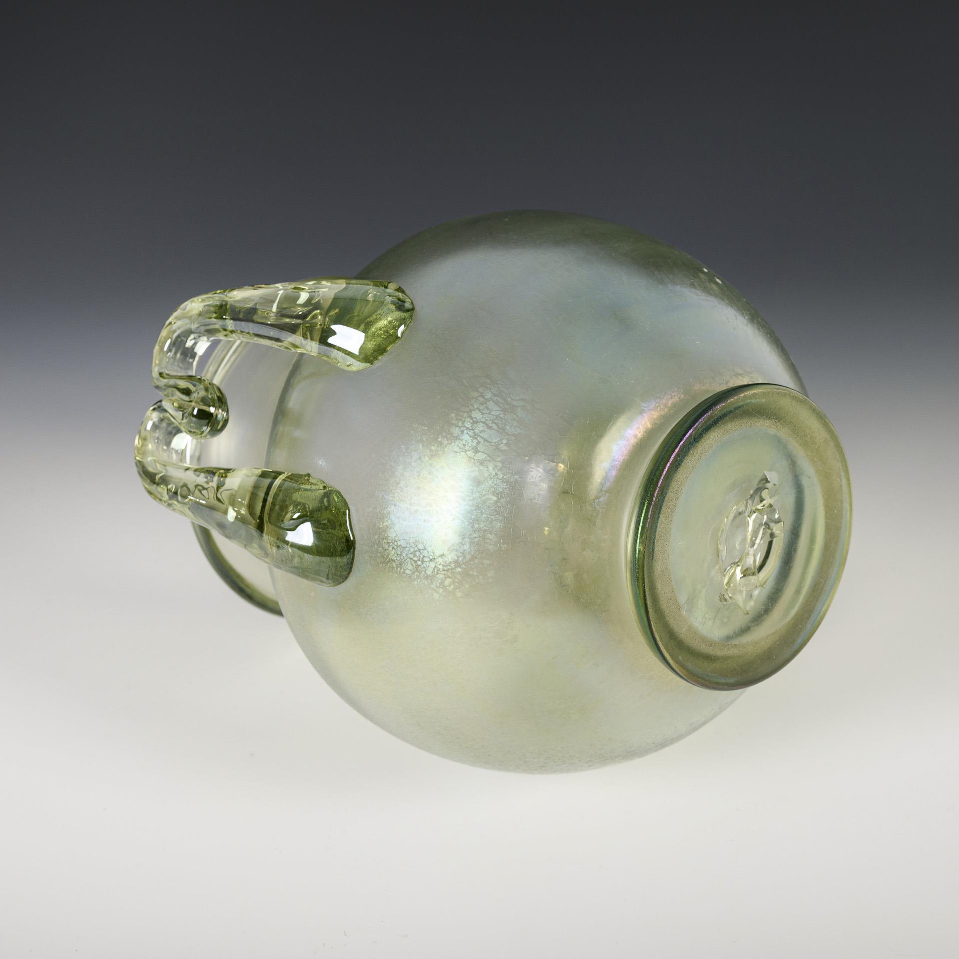 Hellgrünes Uranglas, irisiert. H 26,5 cm. 2,4 kg.