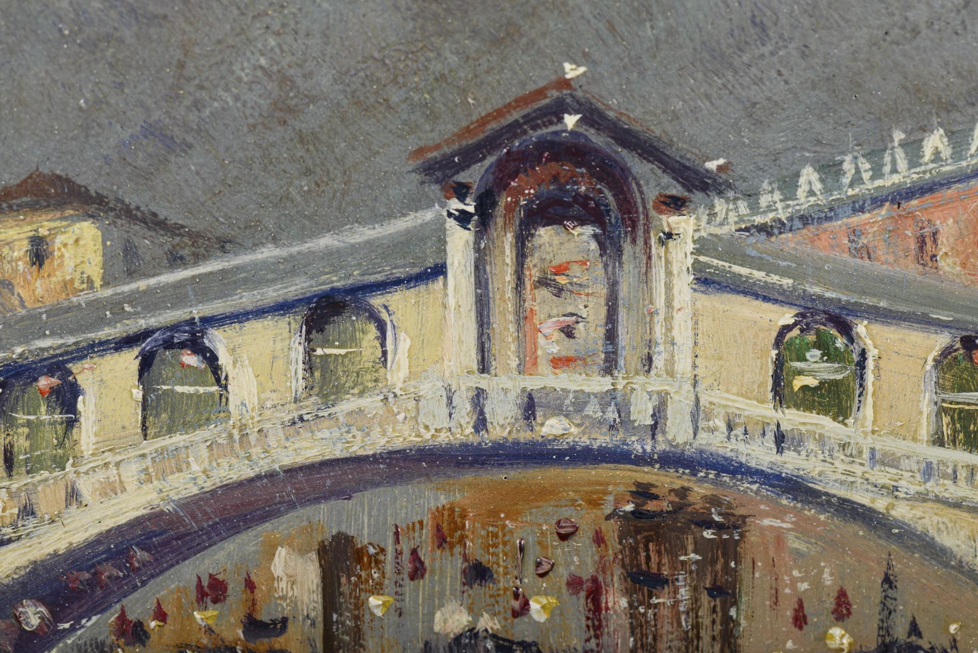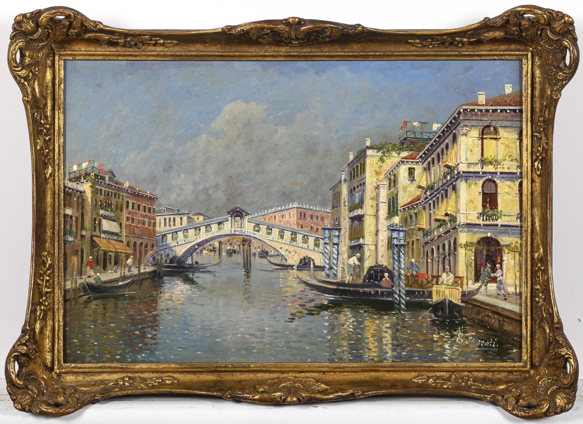 Heller Sonnenschein über dem Kanal der italienischen Stadt mit den Gondeln. Minimale Altersspuren.