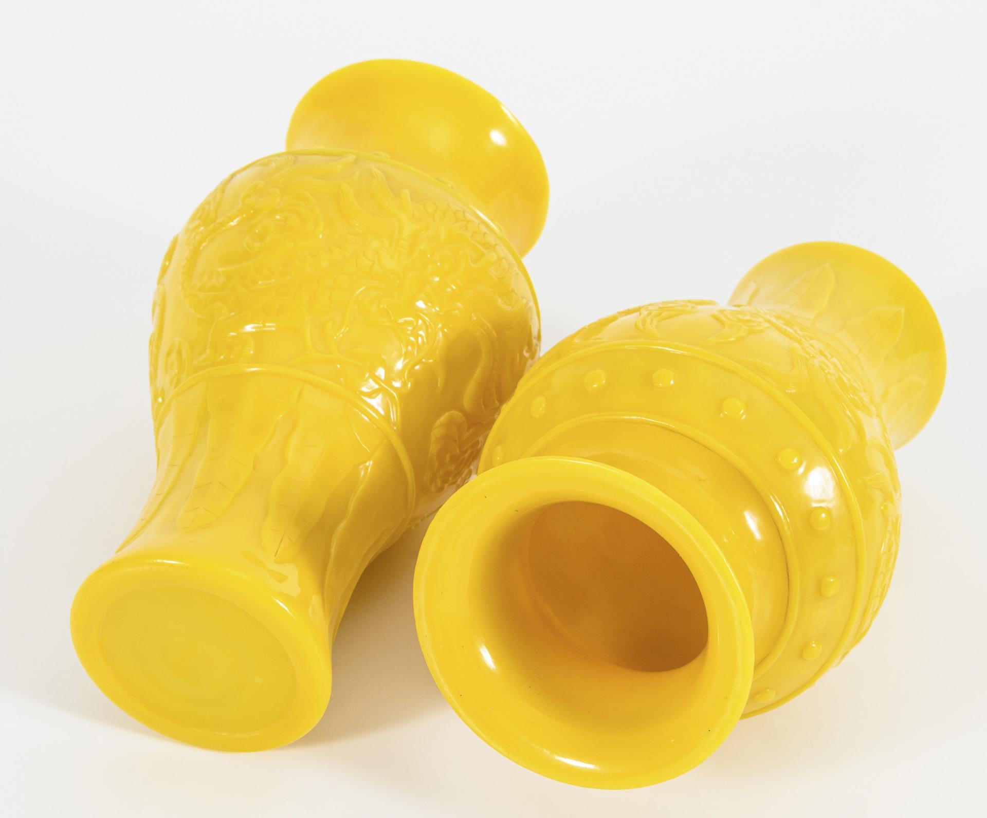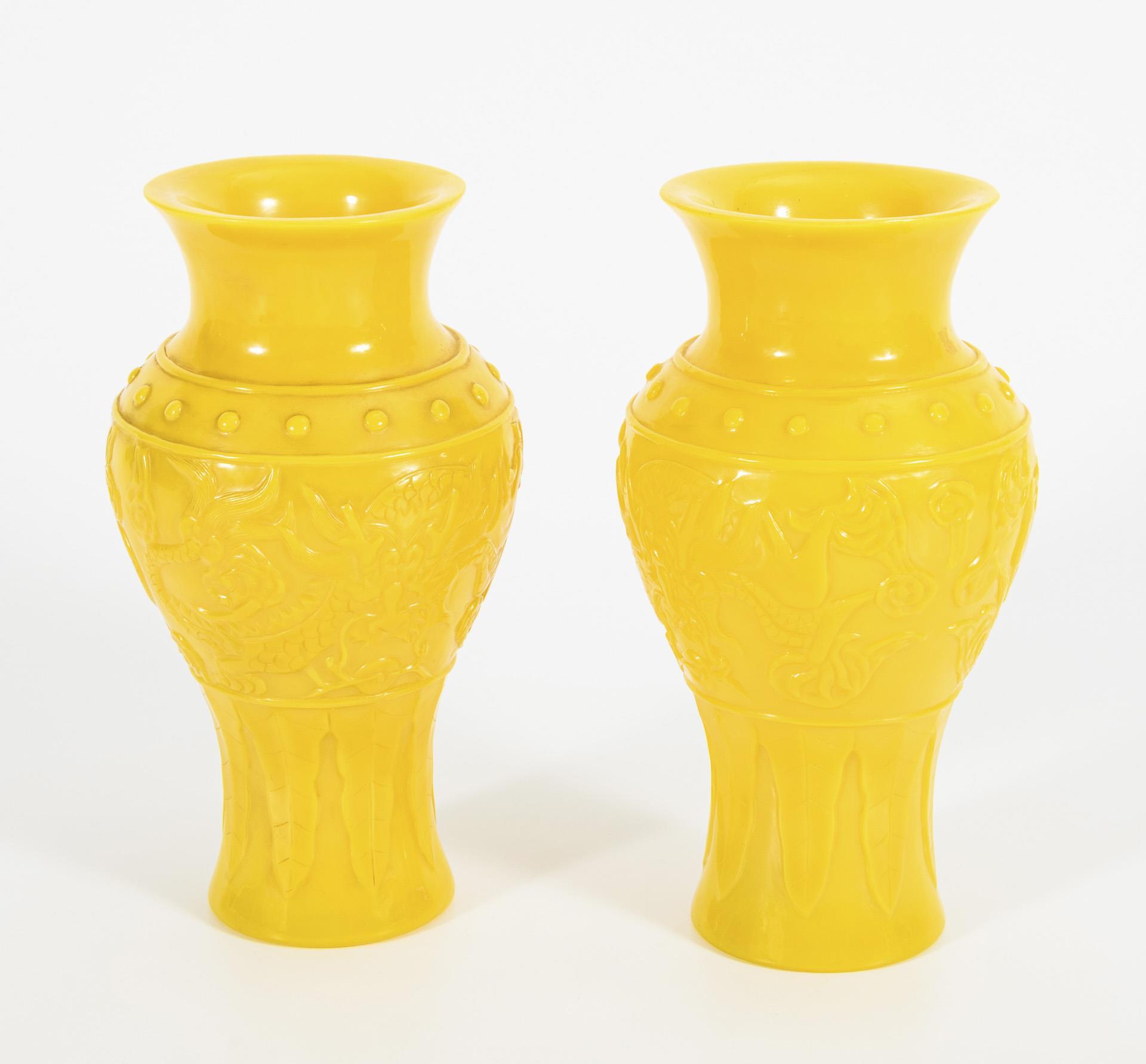 Paar gelbe Glasvasen.