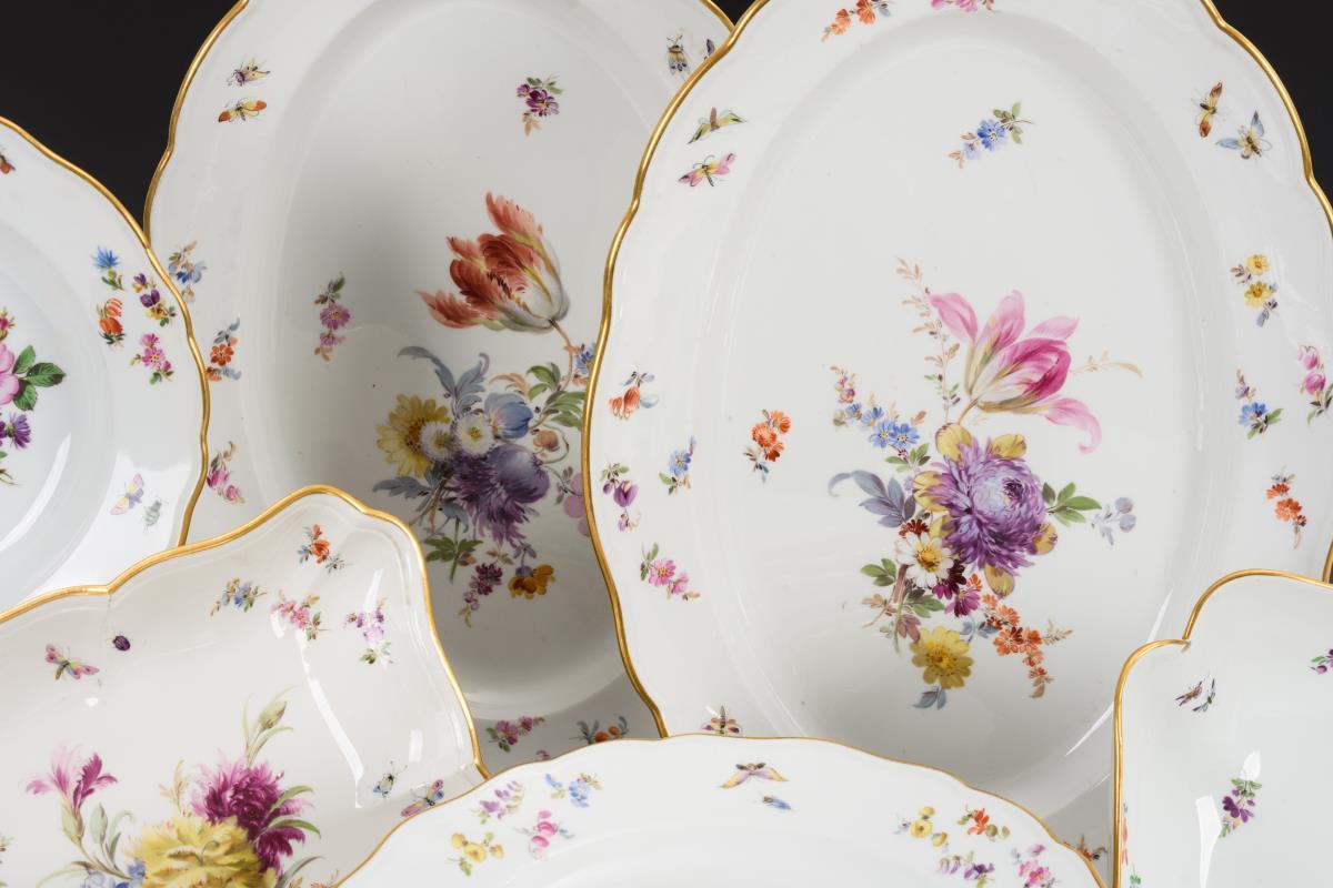 Speiseservice mit Blumen- und Insektenmalerei. Meissen.