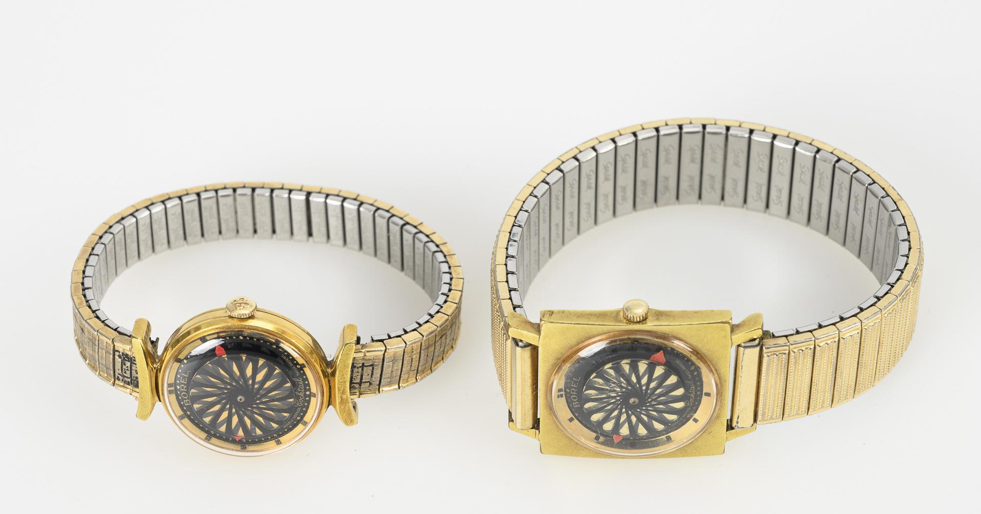 2 außergewöhnliche "Cocktail"-Skelettarmbanduhren mit "Mystery Kaleidoscope"-Ziffernblättern. Ernest Borel.