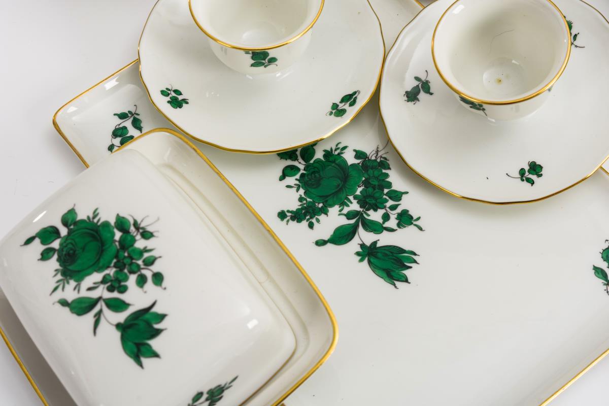 Kaffeeservice mit kupfergrüner Blumenmalerei. Augarten.