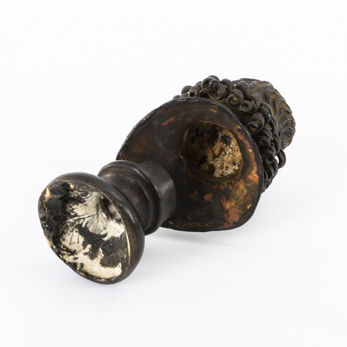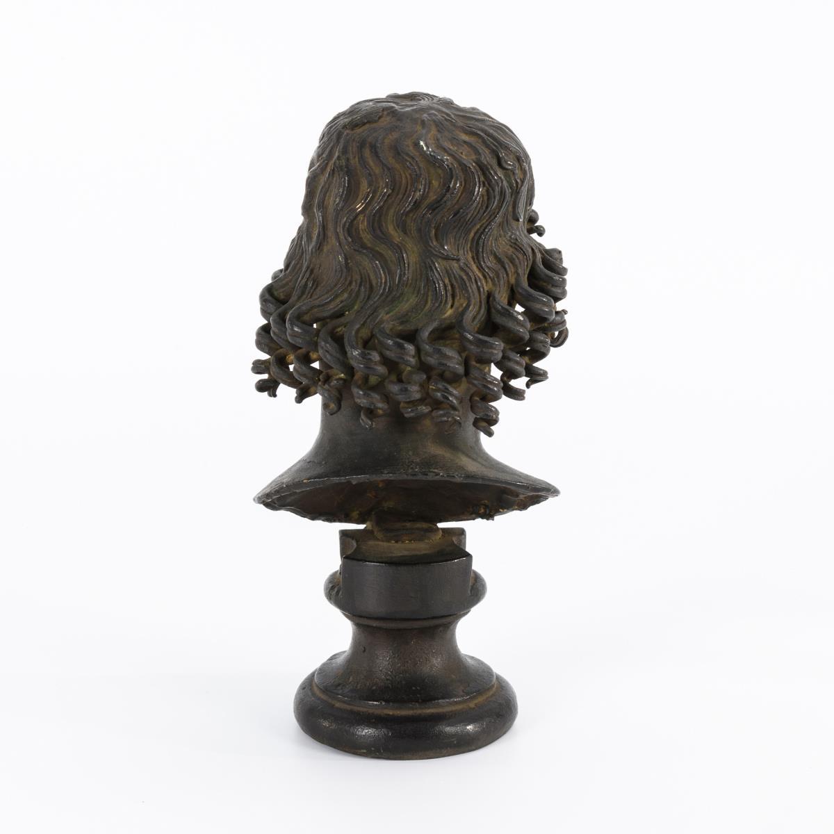 Liebreizender Jüngling mit aufwändig gegossenen Korkenzieherlocken. Minimale Gussfehler an den Haaren.