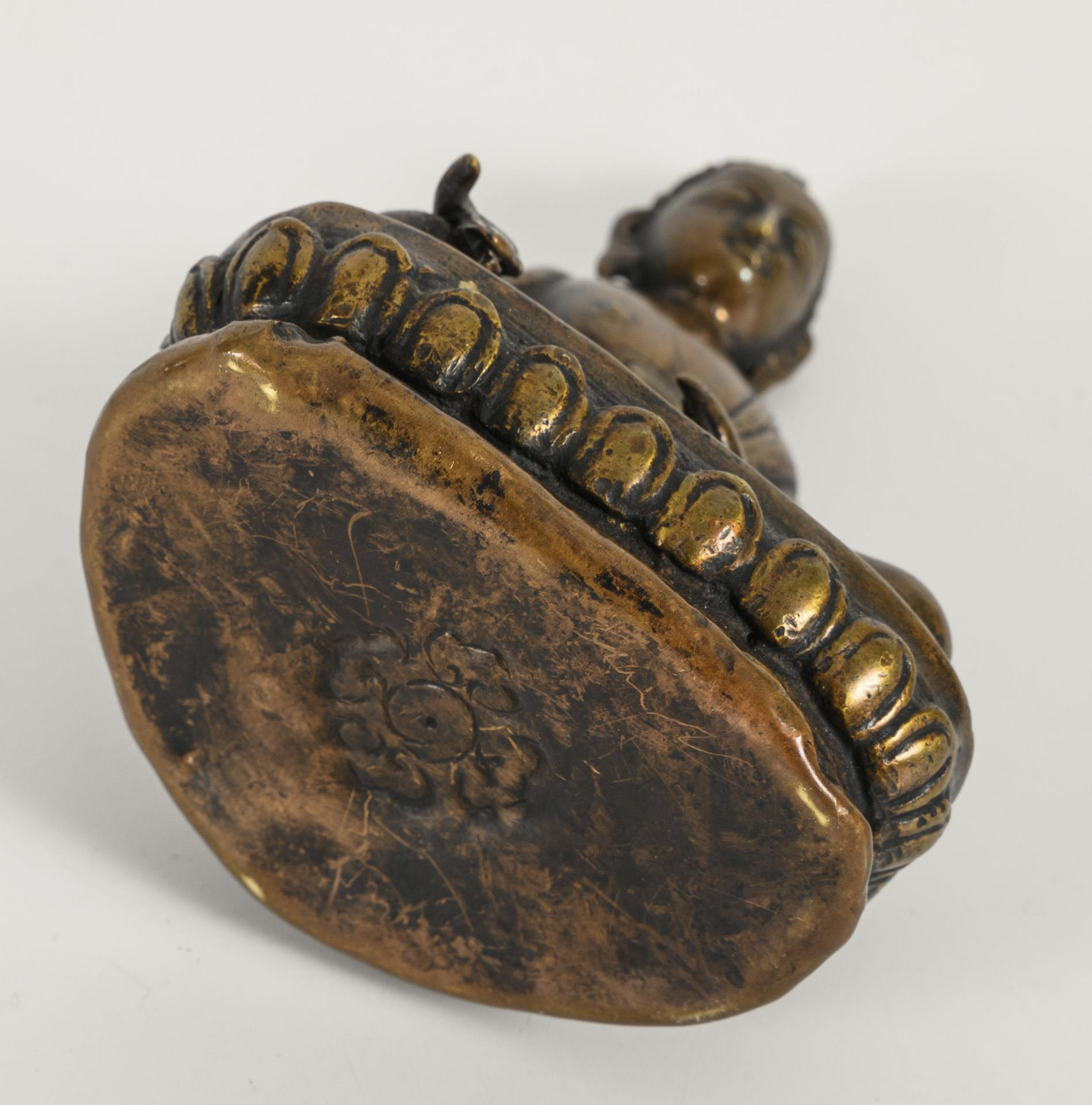 Hotei mit großem Sack, den er hinter sich her zieht. Sack als kleine Dose mit Deckel gearbeitet. (H 6,5 x 9 x 5 cm). / Kleiner Buddha mit der Geste der Erdberührung. Fein gearbeitet, geschlossener Boden. (H 11,5 cm).