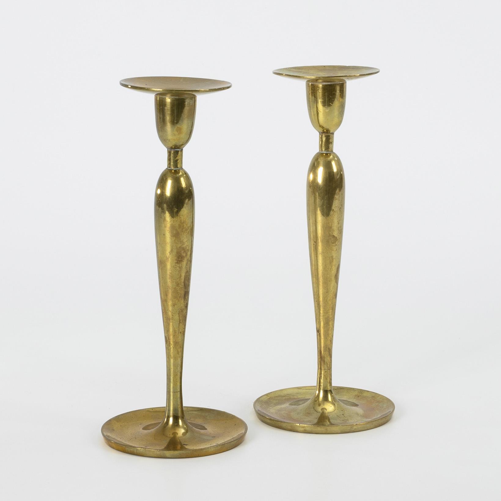 Paar Messing Kerzenleuchter. Werkstätten Karl Hagenauer.