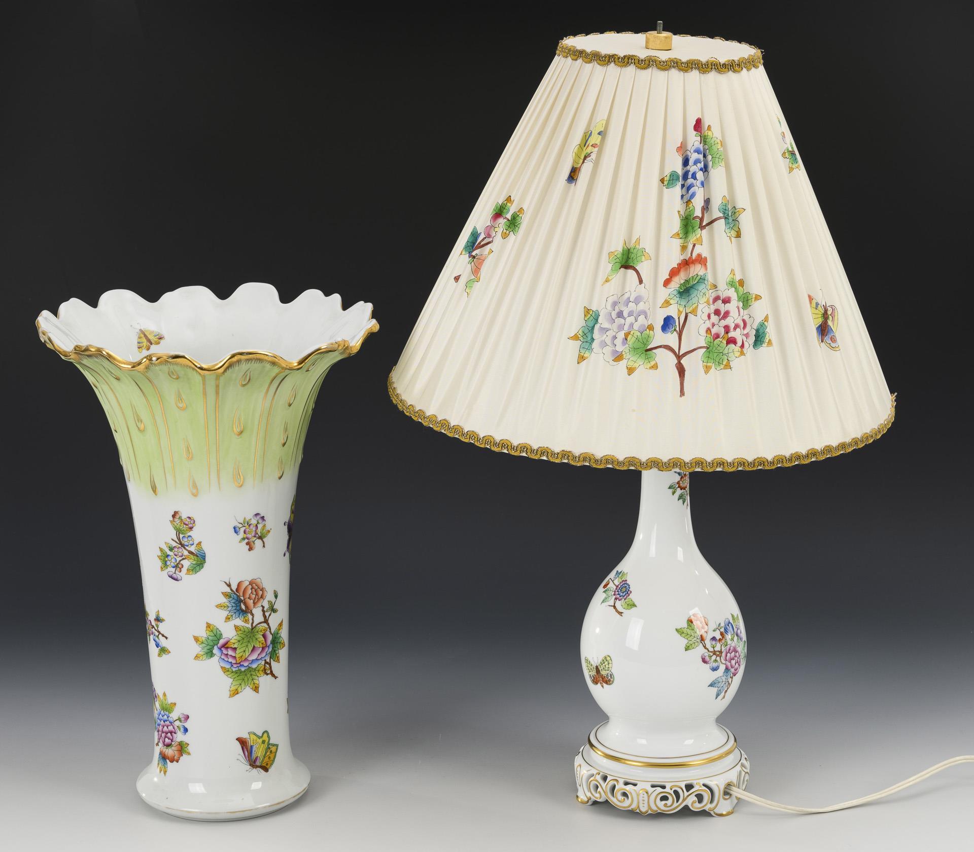 Tischlampe, Wanduhr und große Vase "Queen Victoria". Herend.