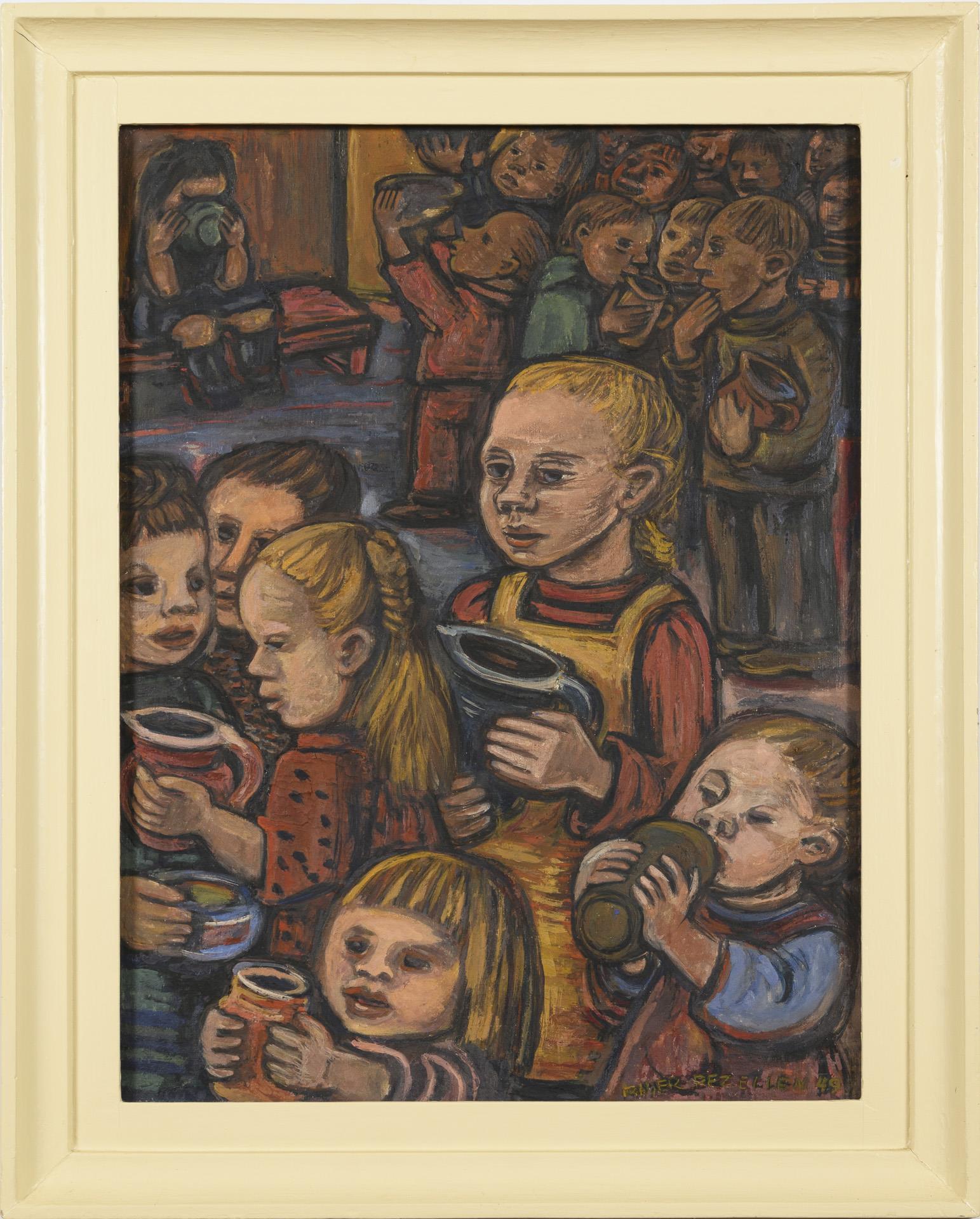 Mischtechnik/Malkarton. Rechts unten signiert, verso bezeichnet/betitelt. (19)49.
