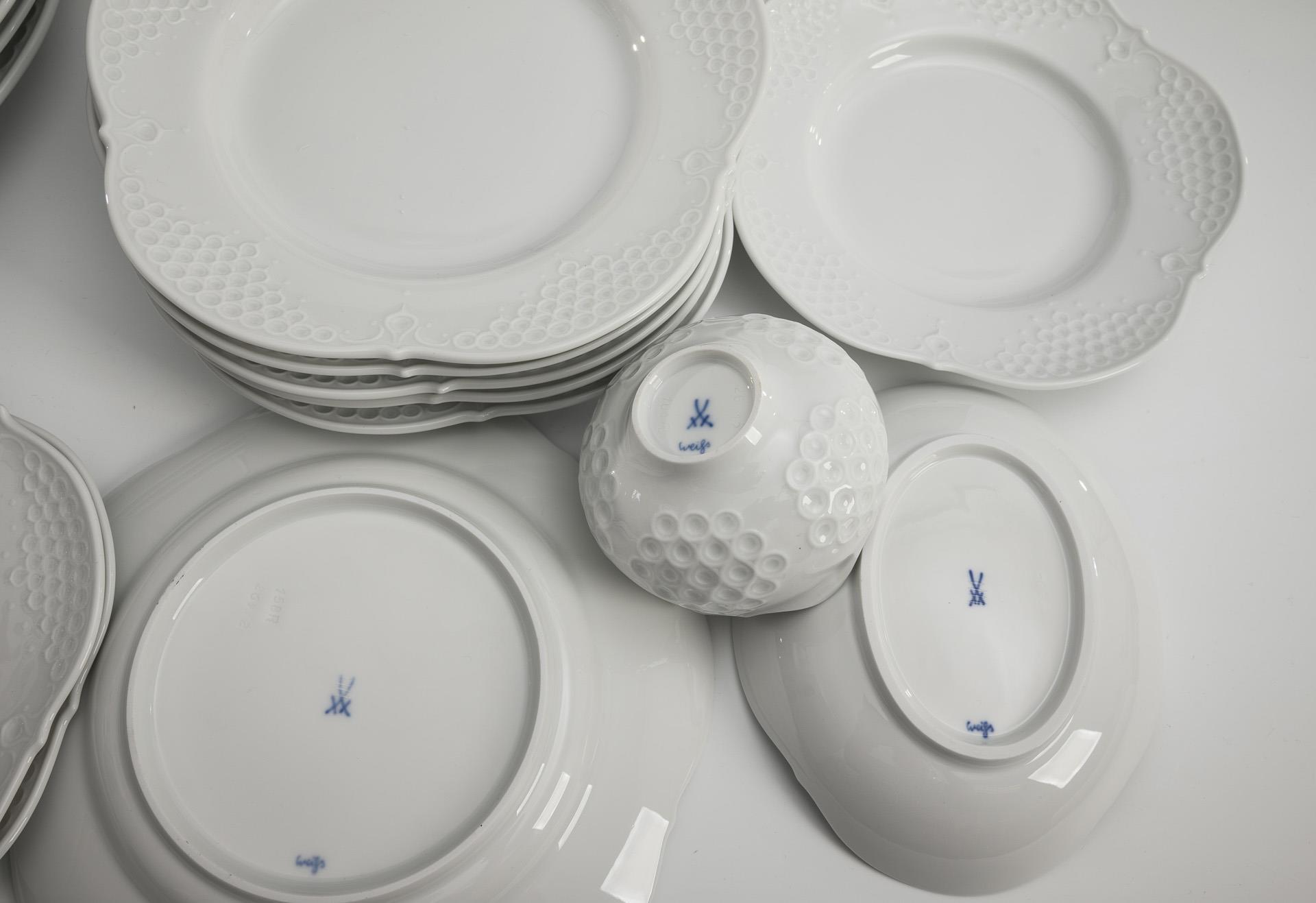 19 Teile eines Speiseservice "Großer Ausschnitt Relief". Meissen.