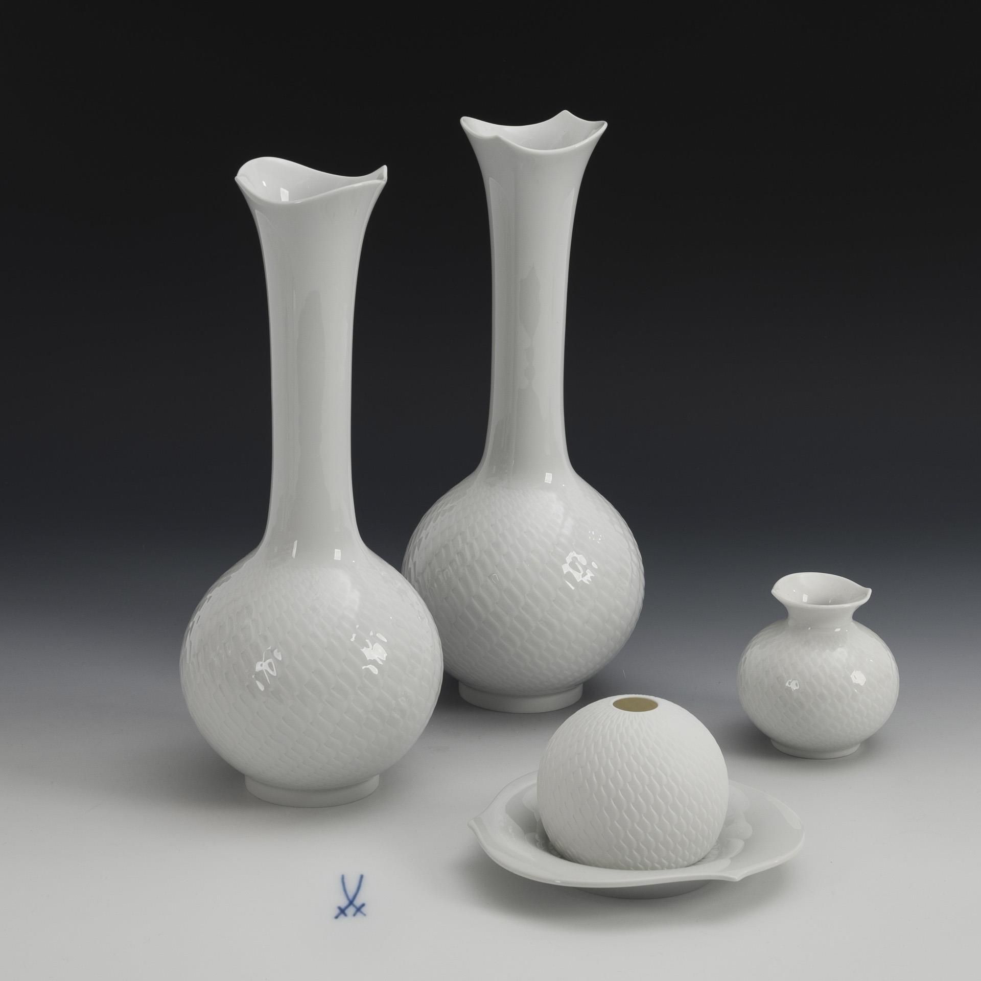 1+2 Vasen und 1 Windlicht "Wellenspiel". Meissen.