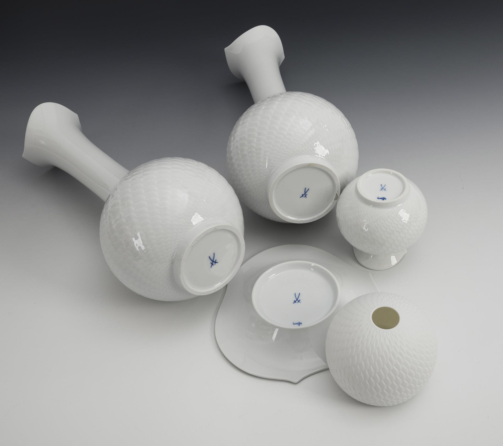 1+2 Vasen und 1 Windlicht "Wellenspiel". Meissen.