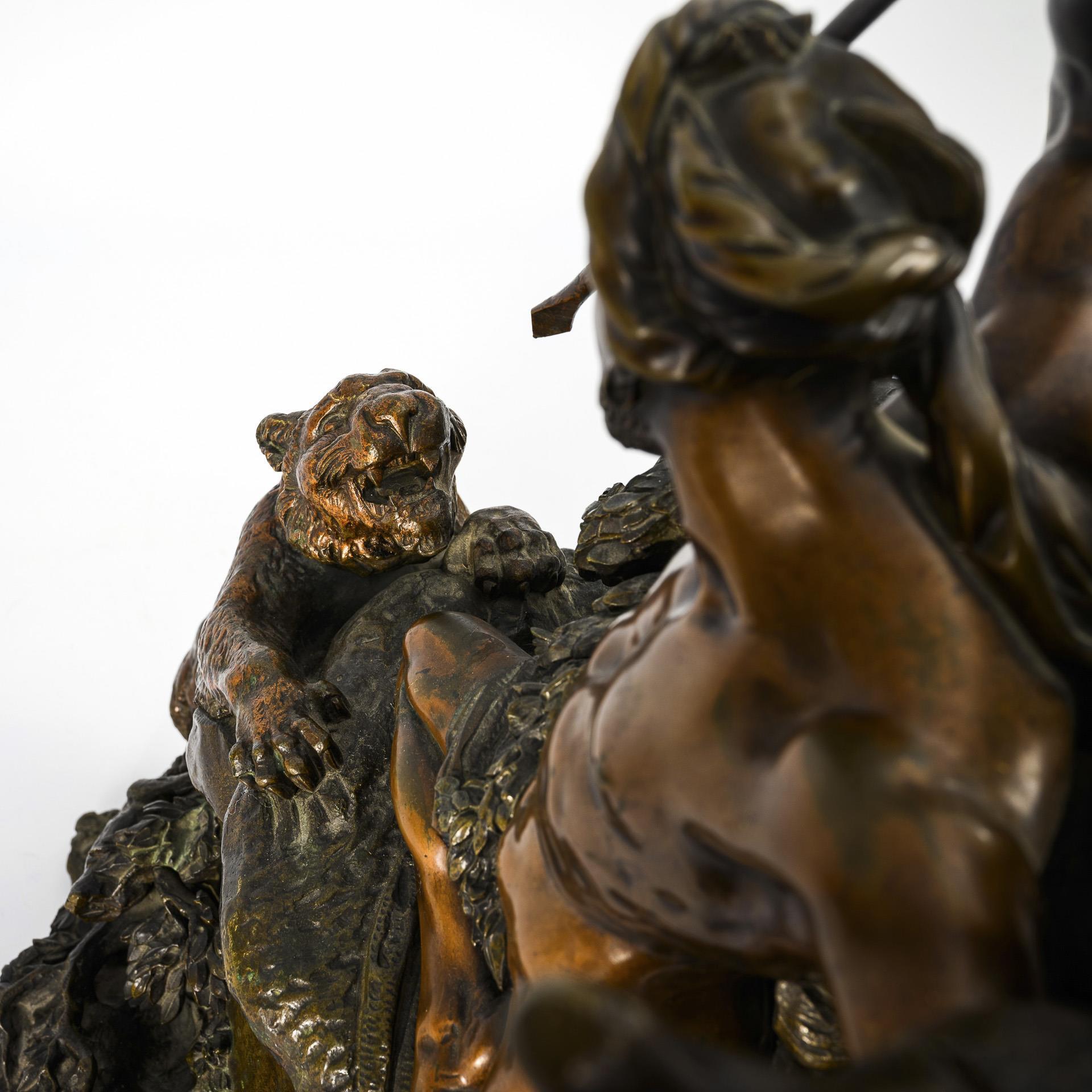 Dramatischer Kampf des nackten Orientalen mit der Wildkatze. Auf der bewachsenen Anhöhe im Ausfallschritt halb kniender Mann mit Turban, der seine Lanze gegen die heraufkletternde Raubkatze erhebt. Ast in der Nähe der Hand angebrochen, Teil der Lanze fehlt, Inkarnat berieben.